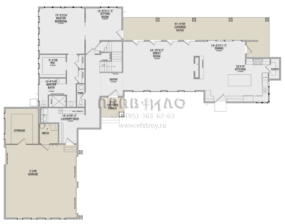S5-298 (8768-00083) Это иностранный проект, для которого требуется адаптация под нормы, действующие в Российской Федерации. Вы видите проект дома в стиле Ранчо. В этом доме сочетаются черты сельской постройки и аскетичность лофта. Внутри жильцы смогут проводить время с максимальным комфортом. Обратим внимание, что сейчас на планировках все размеры представлены в футах. Для перевода в метры вам необходимо значение в футах умножить на 0,3048.