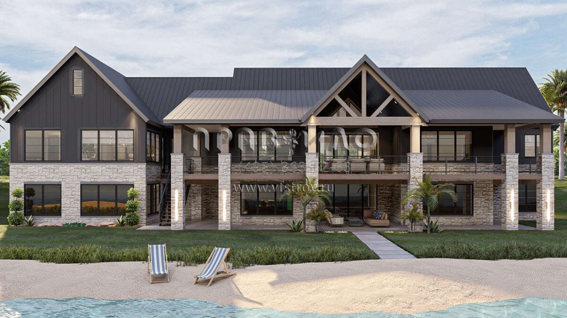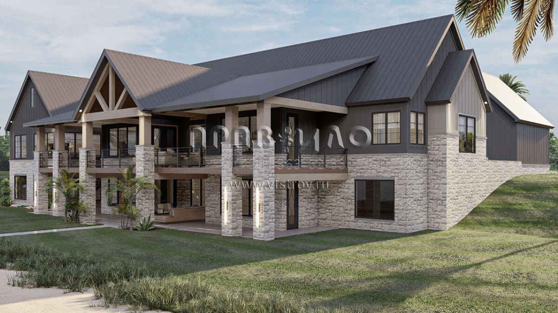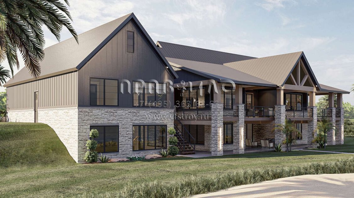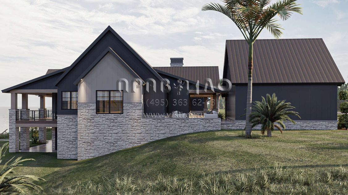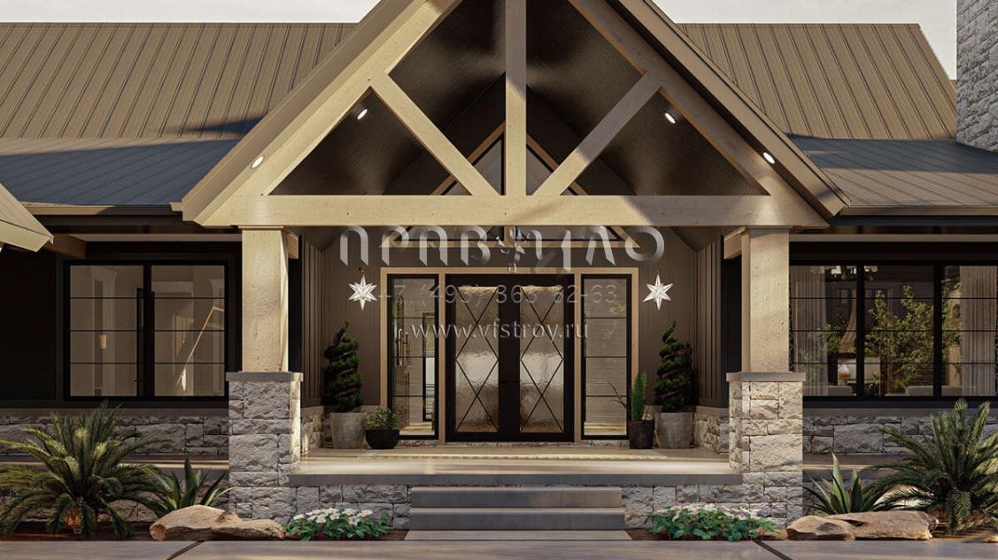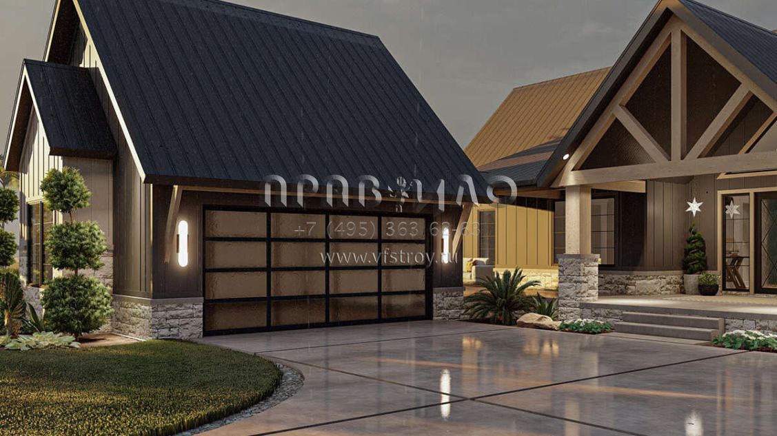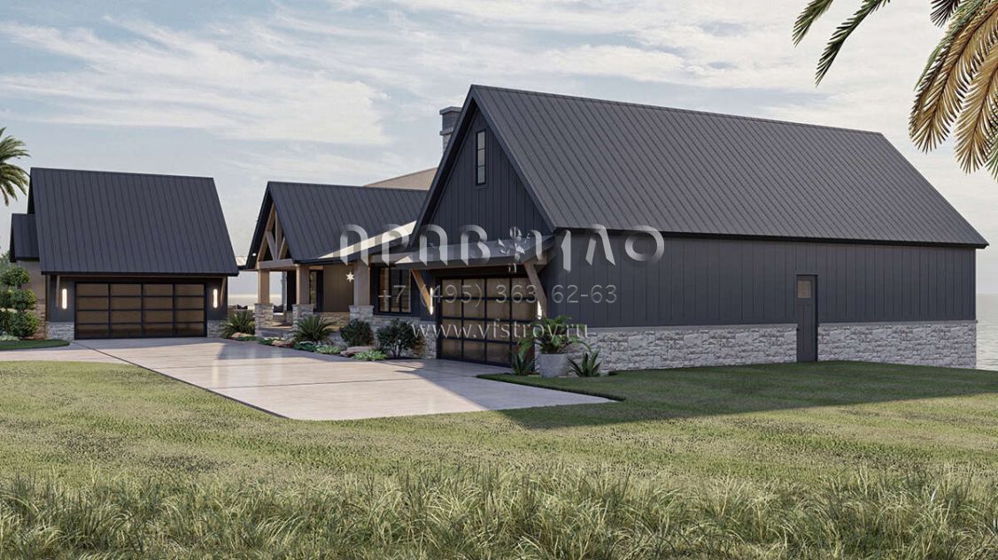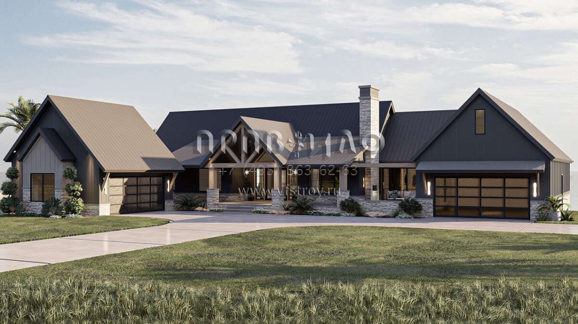 Проект одноэтажного дома с гаражом на три и более машин в американском стиле S5-298 (963-00713)