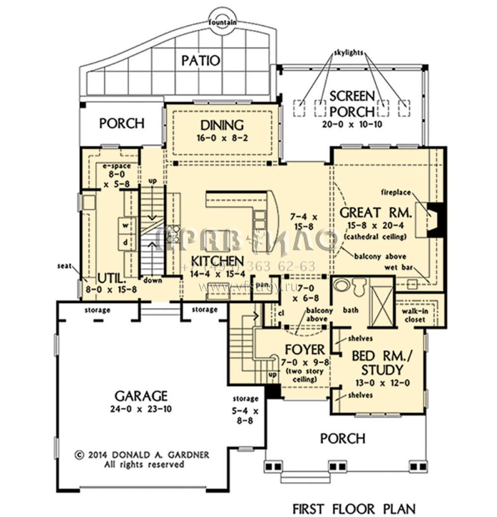 Поскольку этот проект разрабатывался иностранными архитекторами, для строительства дома требуется переработка проекта под действующие в России нормы. Данные визуализации проекта представлены для ознакомления с концепцией проекта. Проект разработан американским архитектурным бюро и представлен America's Best House Plans.