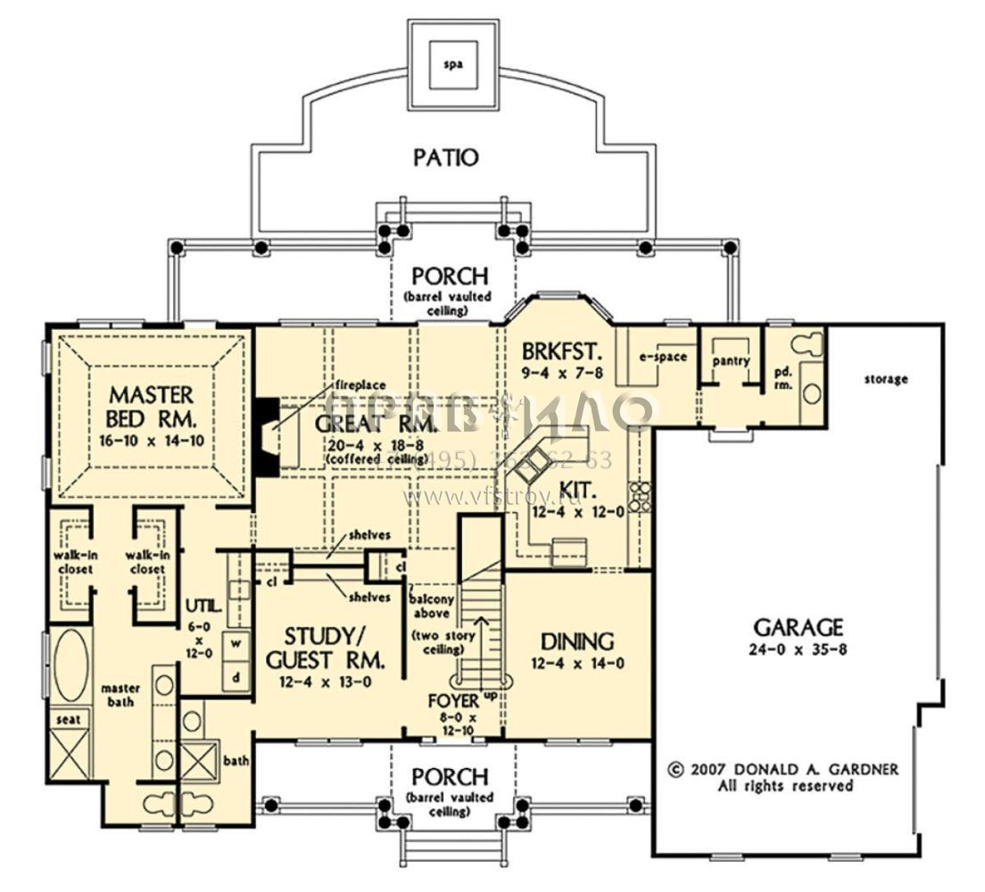 Проект двухэтажного дома с гаражом на три и более машин в стиле Ранчо S5-299 (2865-00343)