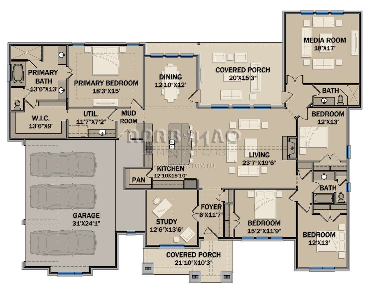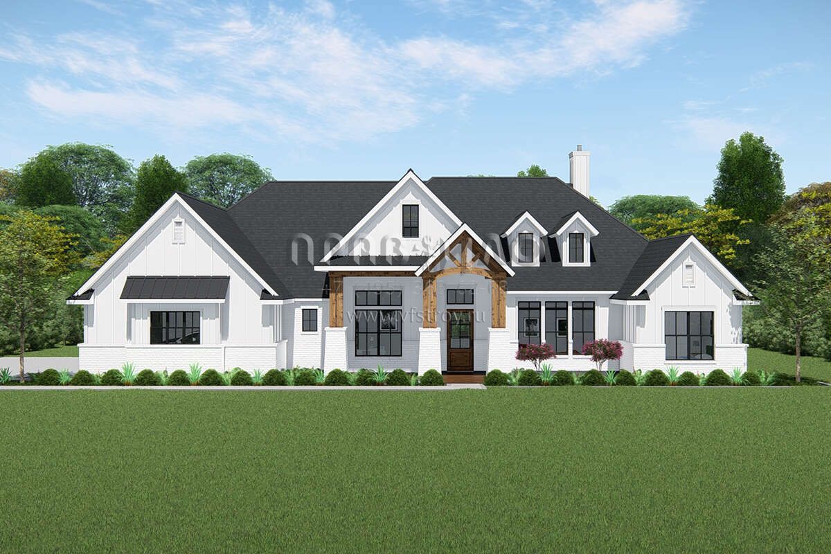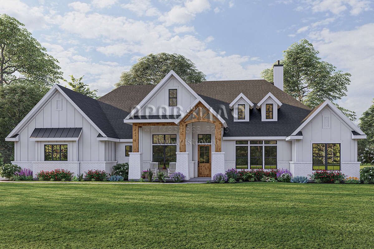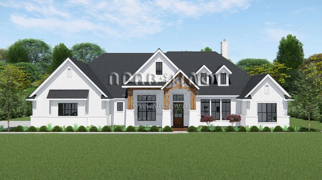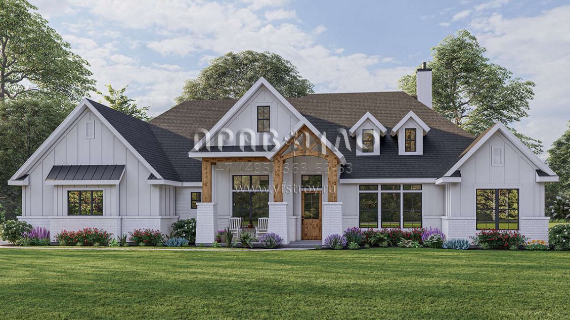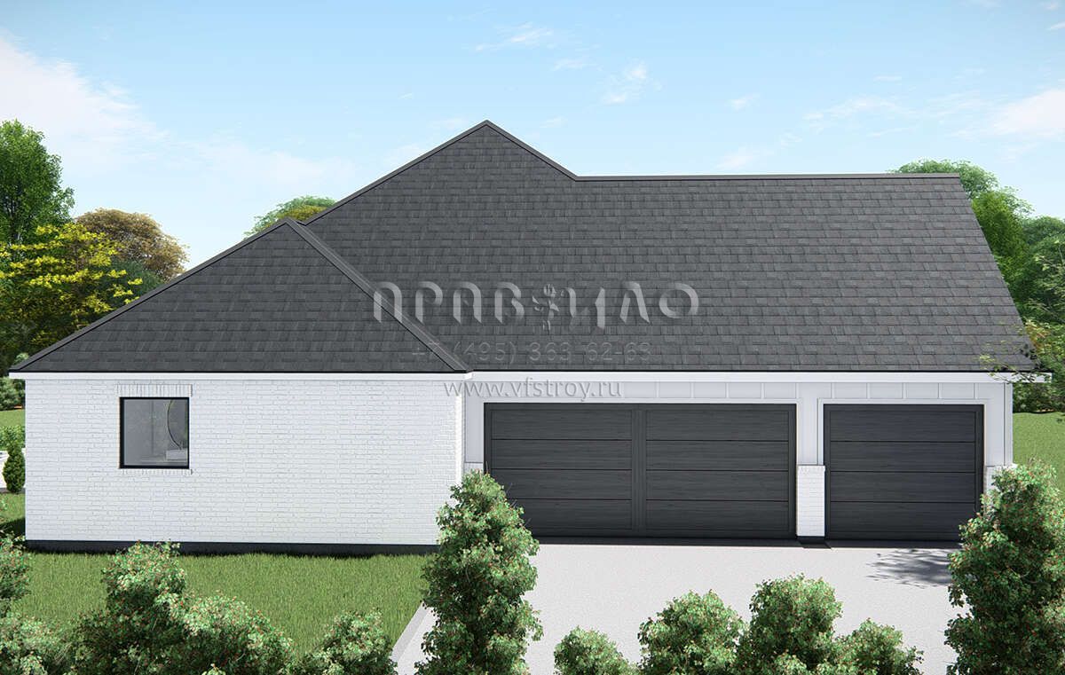 Проект одноэтажного дома с гаражом на три и более машин в американском стиле S5-299 (3571-00016)