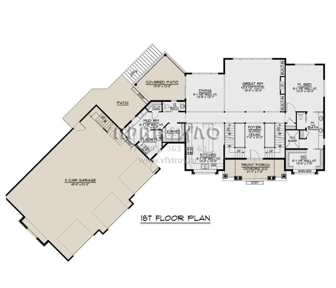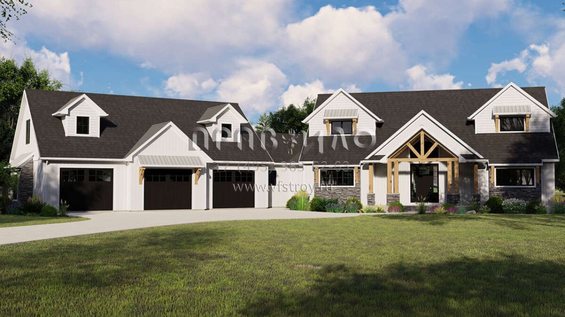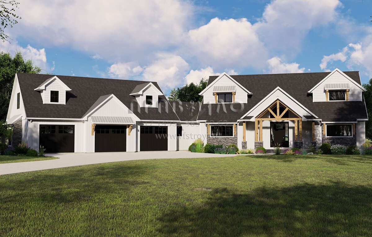 Проект двухэтажного дома с гаражом на три и более машин в современном стиле S5-299 (5032-00097)