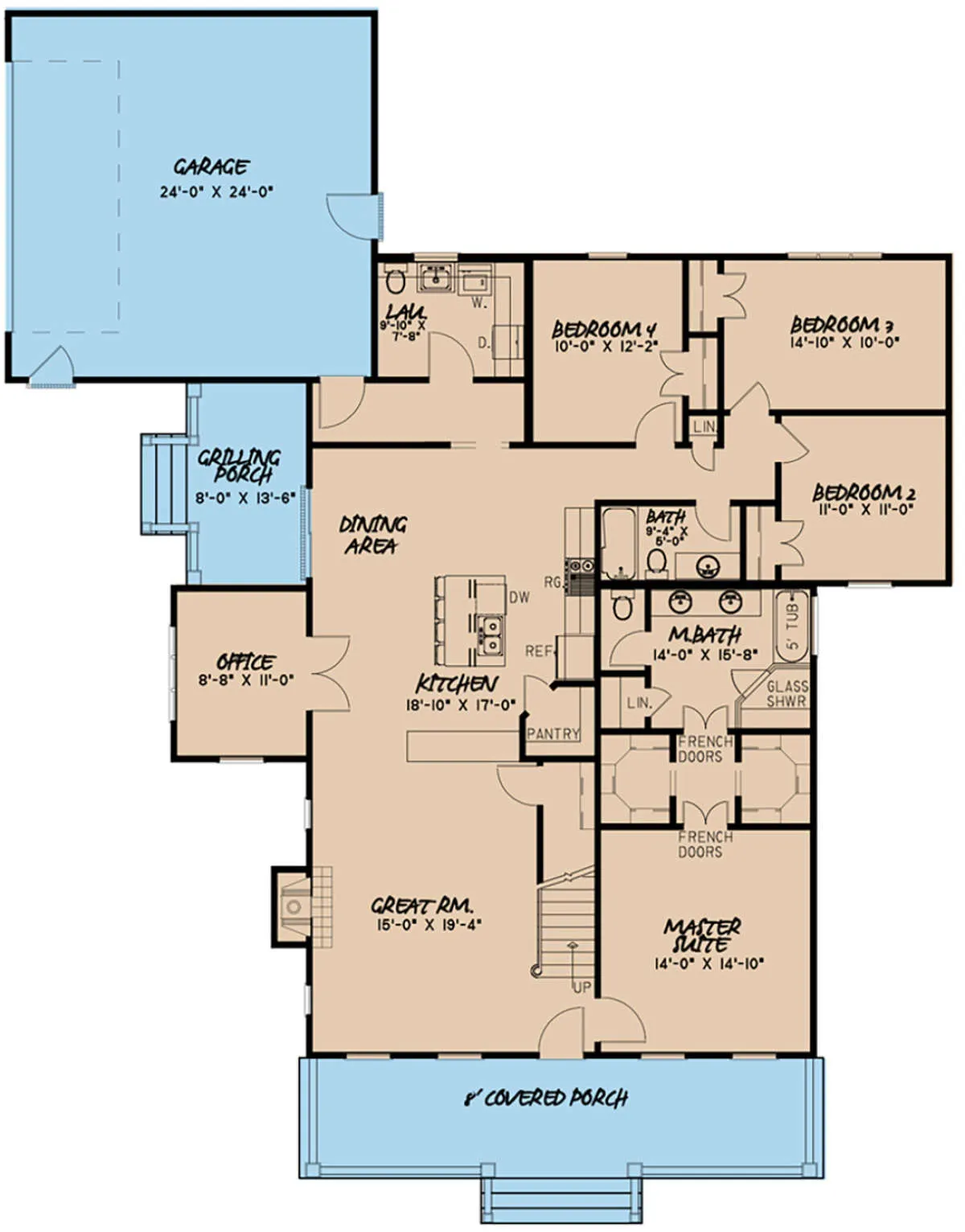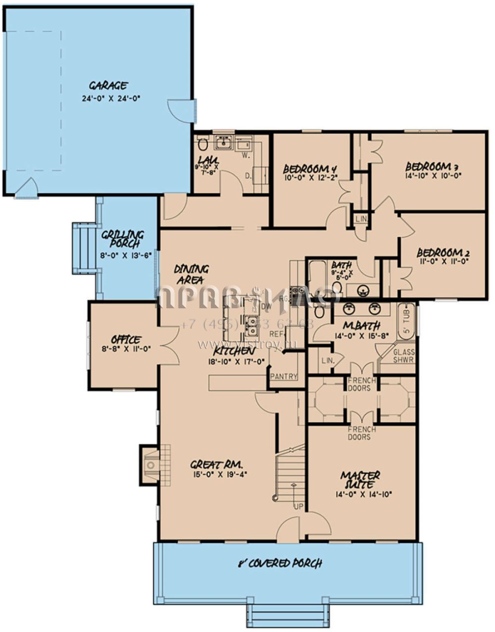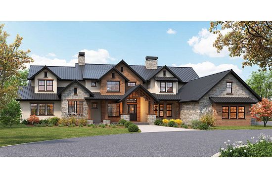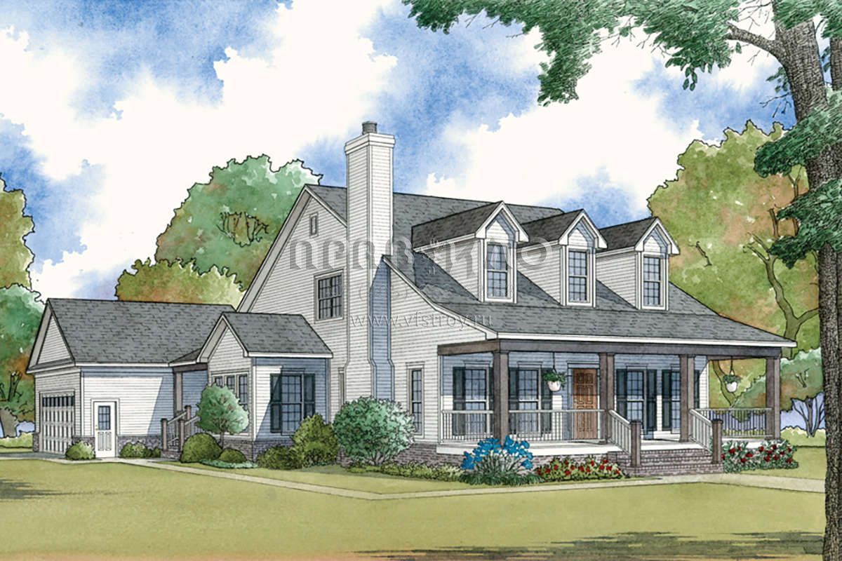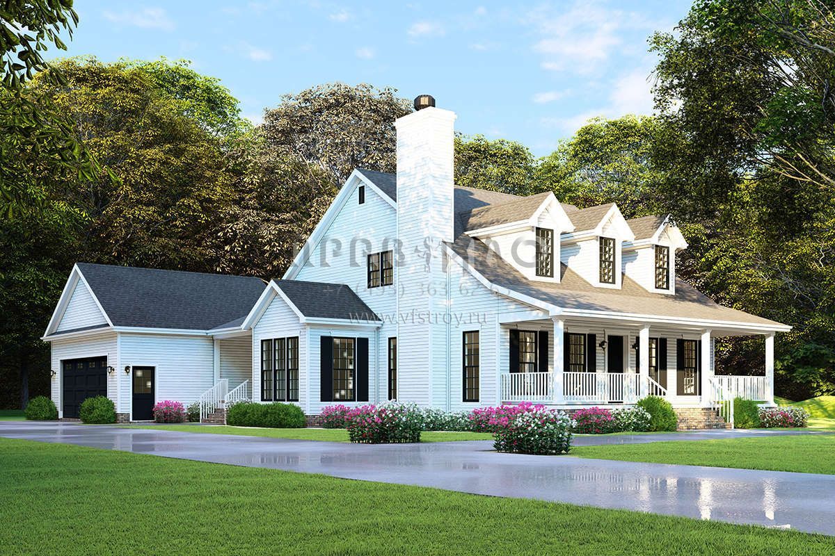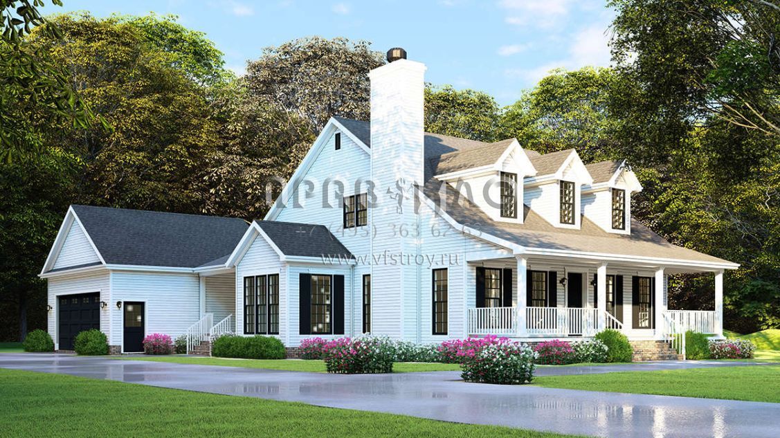 Проект двухэтажного дома с гаражом на две машины в стиле Ранчо S5-299 (8318-00100)