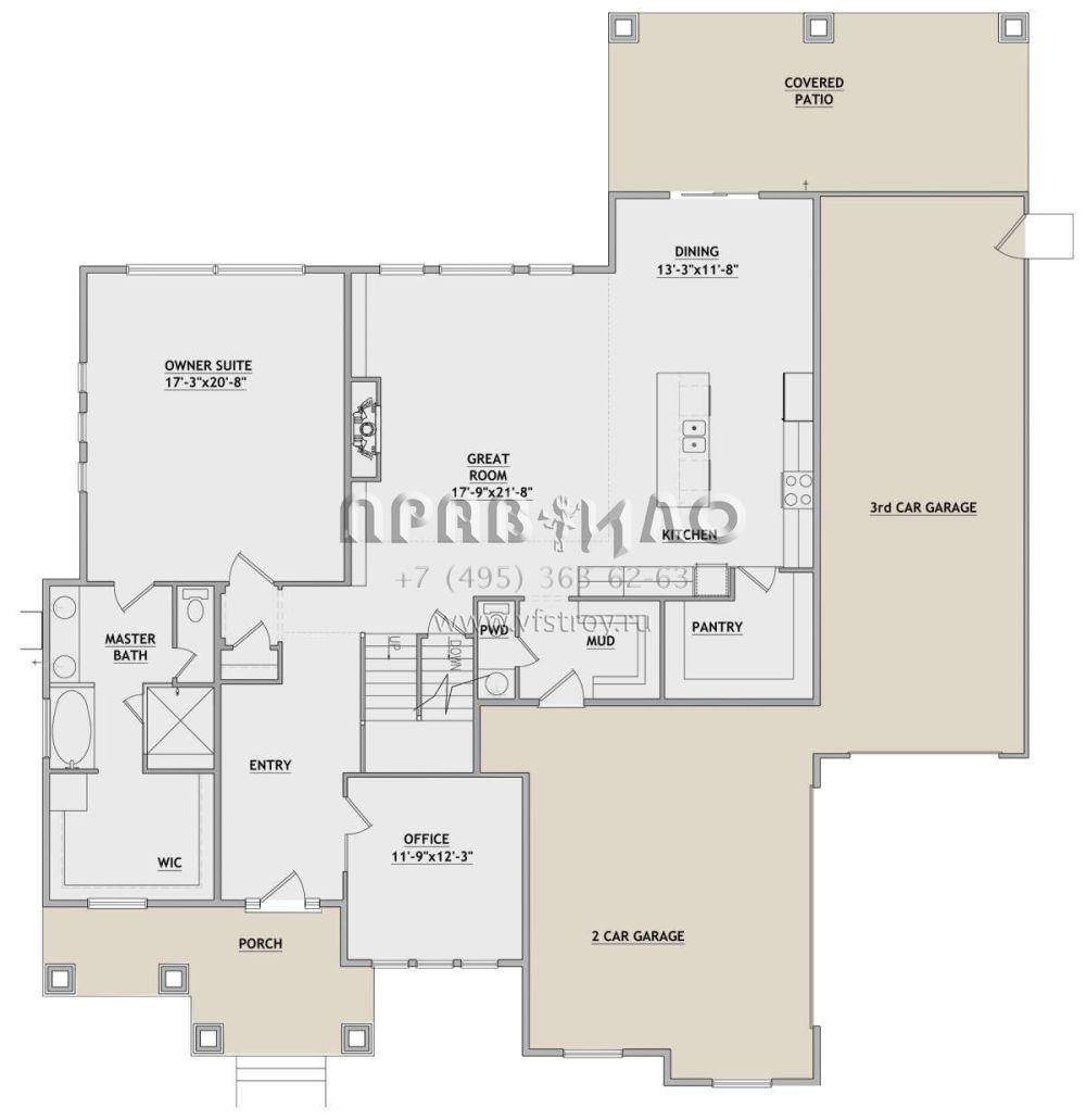 Проект двухэтажного дома с гаражом на три и более машин в американском стиле S5-299 (8768-00009)