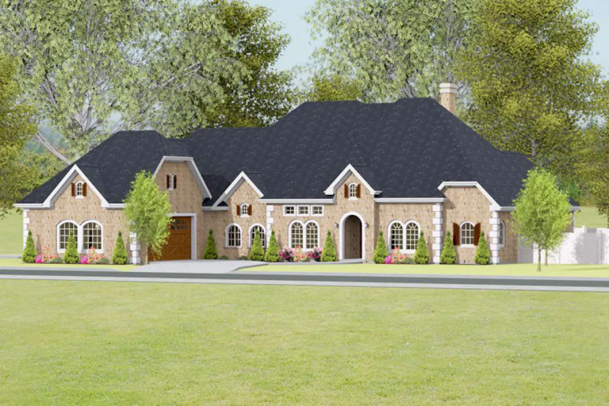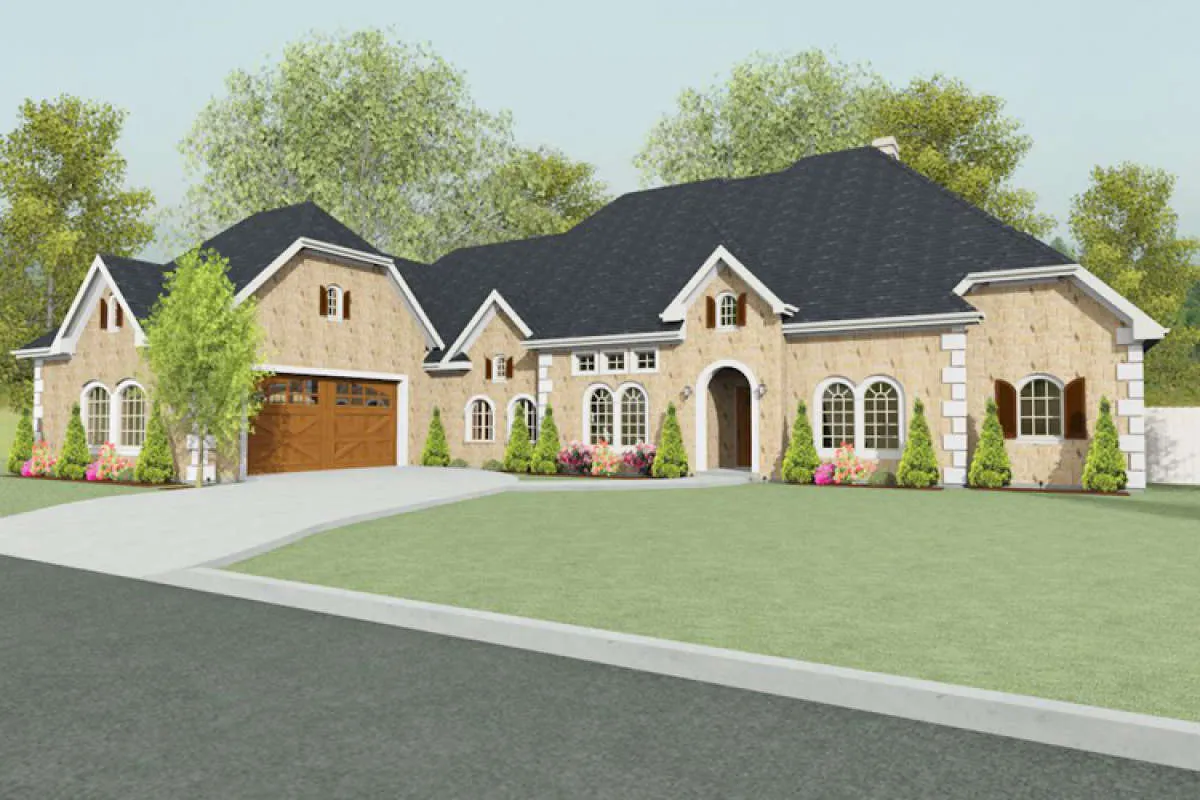 Проект одноэтажного дома с гаражом на три и более машин в английском стиле S5-299 (9940-00008)