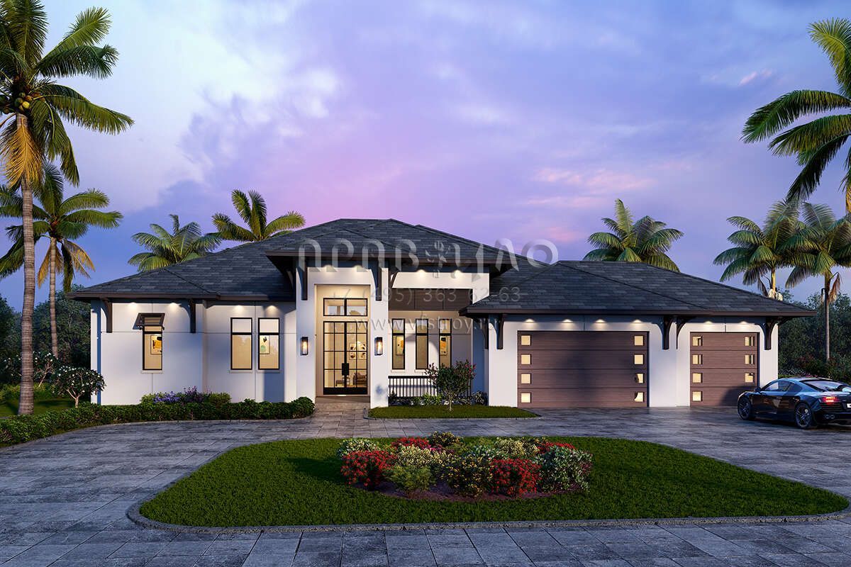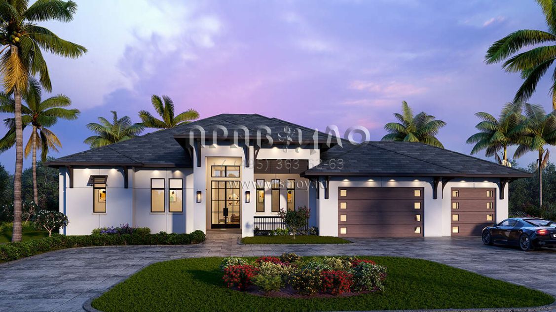 Проект одноэтажного дома с гаражом на три и более машин в современном стиле S5-300 (5565-00102)
