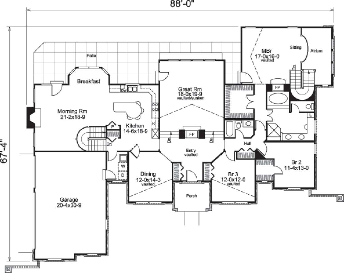 Проект одноэтажного дома с гаражом на три и более машин в стиле Ранчо S5-300 (5633-00170)