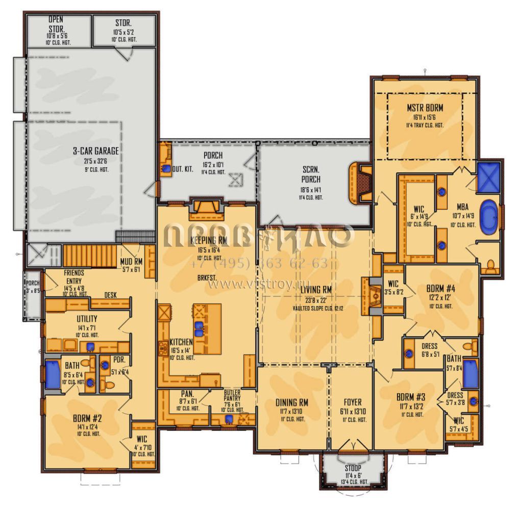 Поскольку этот проект разрабатывался иностранными архитекторами, для строительства дома требуется переработка проекта под действующие в России нормы. Данные визуализации проекта представлены для ознакомления с концепцией проекта. Проект разработан американским архитектурным бюро и представлен America's Best House Plans.