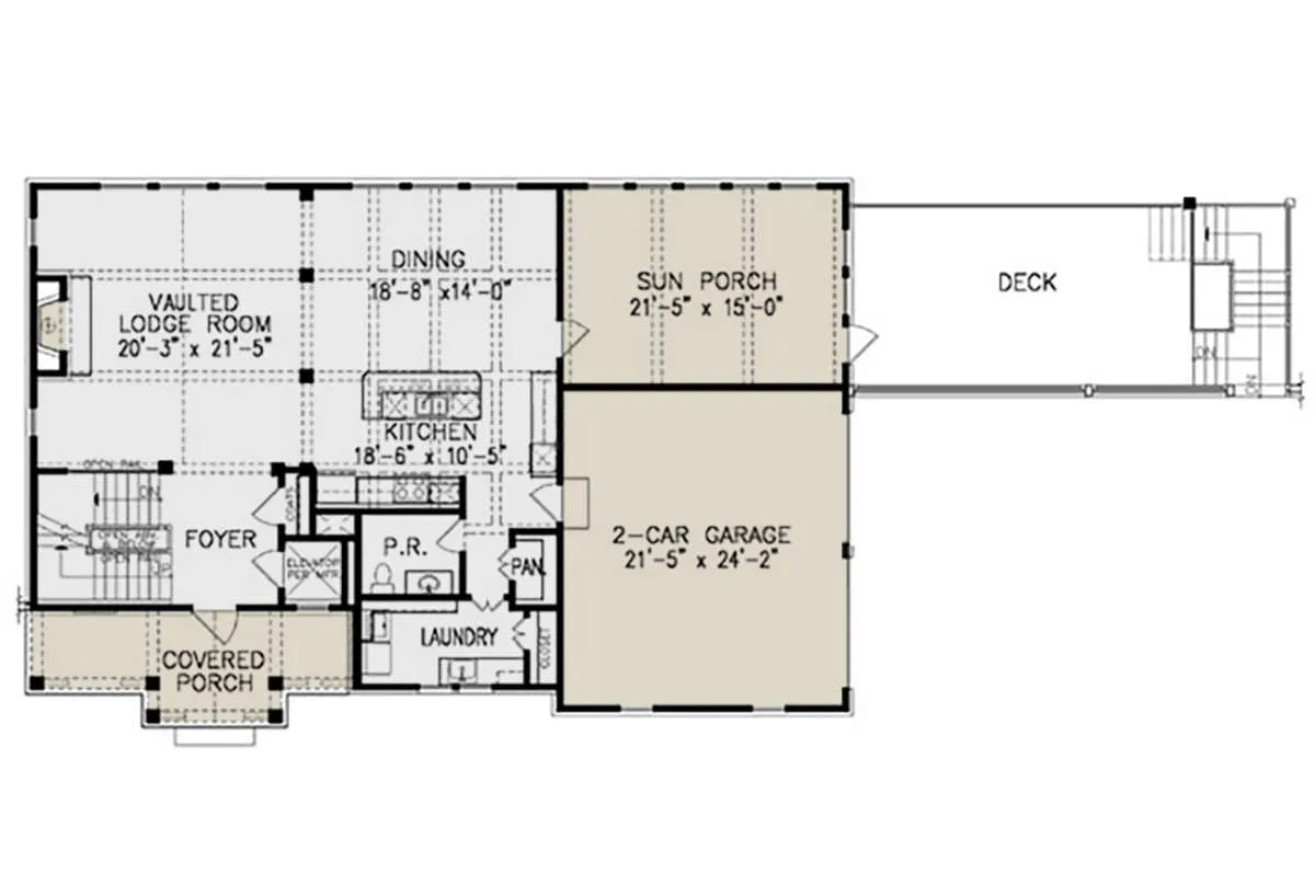 S5-300 (699-00177) Это иностранный проект, для которого требуется адаптация под нормы, действующие в Российской Федерации. Вы видите проект дома в стиле Шале. В этом доме сочетаются черты сельской постройки и аскетичность лофта. Внутри жильцы смогут проводить время с максимальным комфортом. Обратим внимание, что сейчас на планировках все размеры представлены в футах. Для перевода в метры вам необходимо значение в футах умножить на 0,3048.