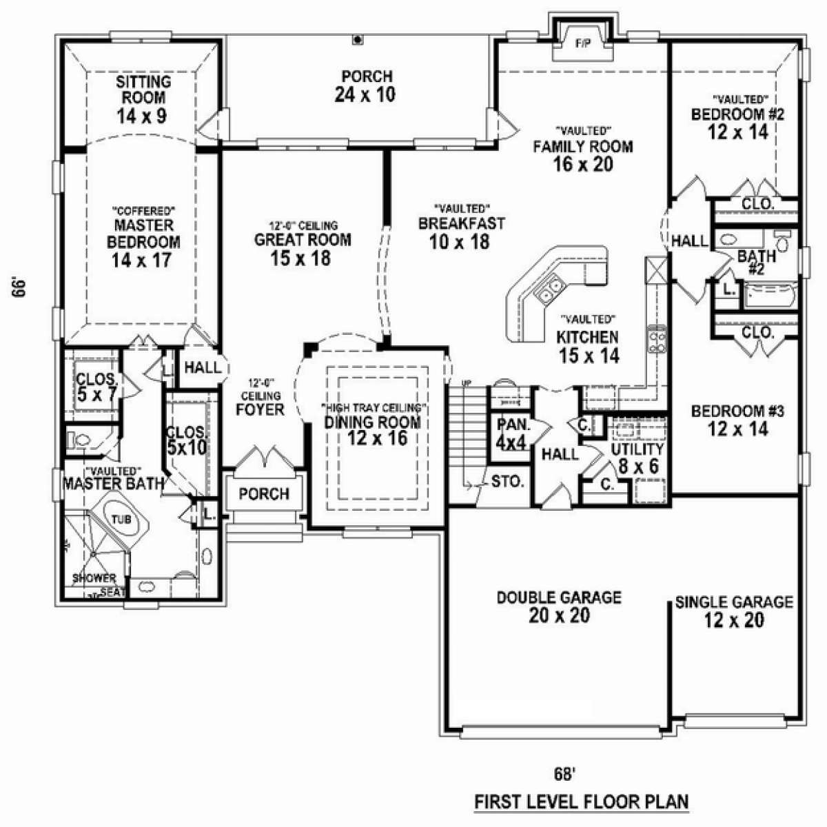 Проект двухэтажного дома с гаражом на три и более машин в стиле Ранчо S5-301 (053-02542)
