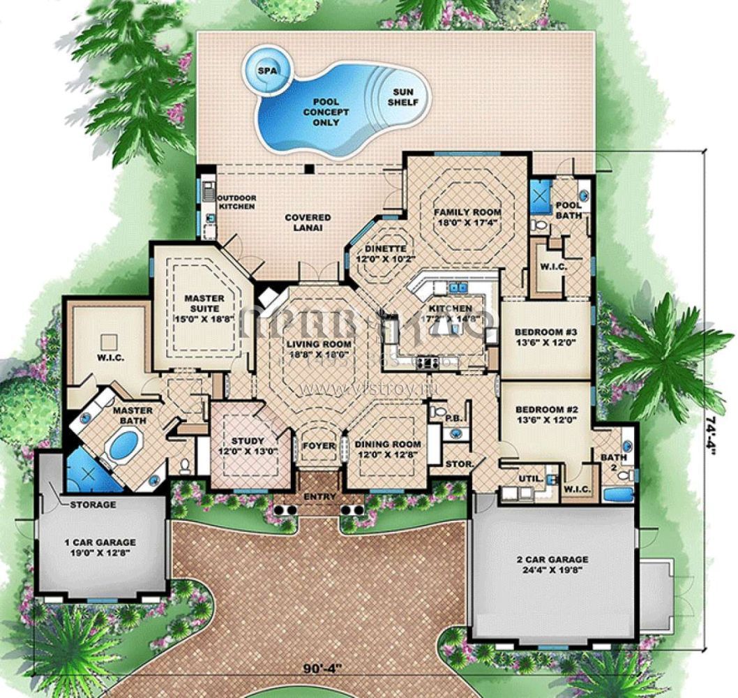 Проект одноэтажного дома с гаражом на три и более машин в прибрежном стиле S5-301 (1018-00064)