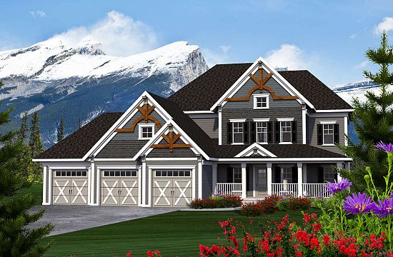 Проект двухэтажного дома с гаражом на три и более машин в американском стиле S5-301 (341-00122)