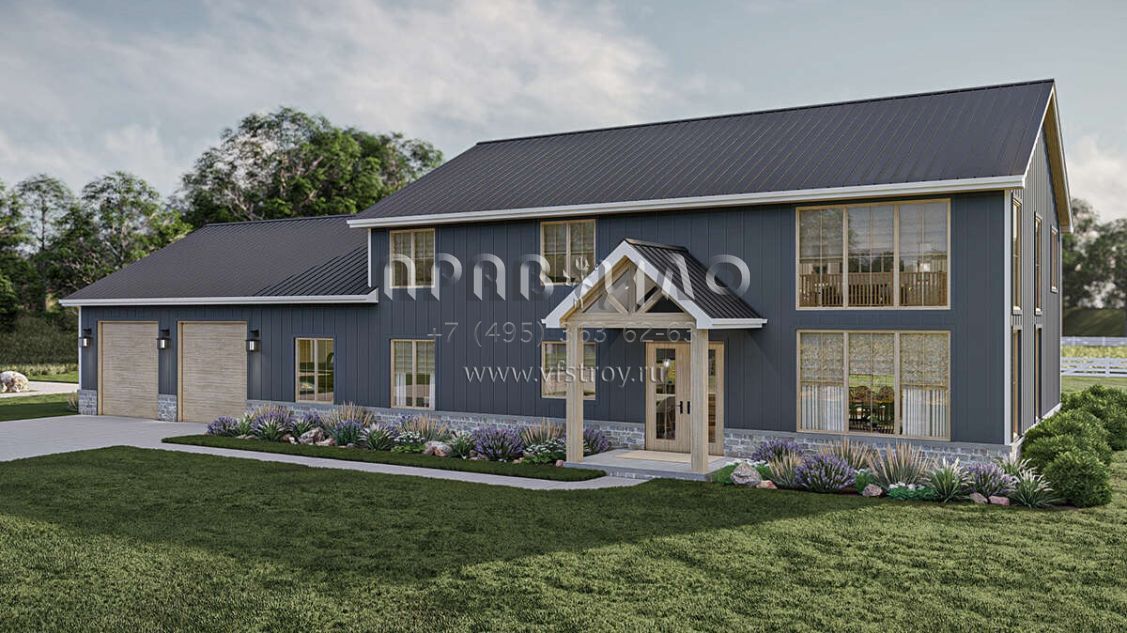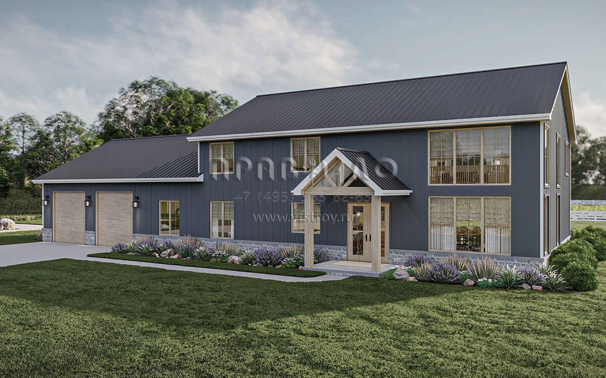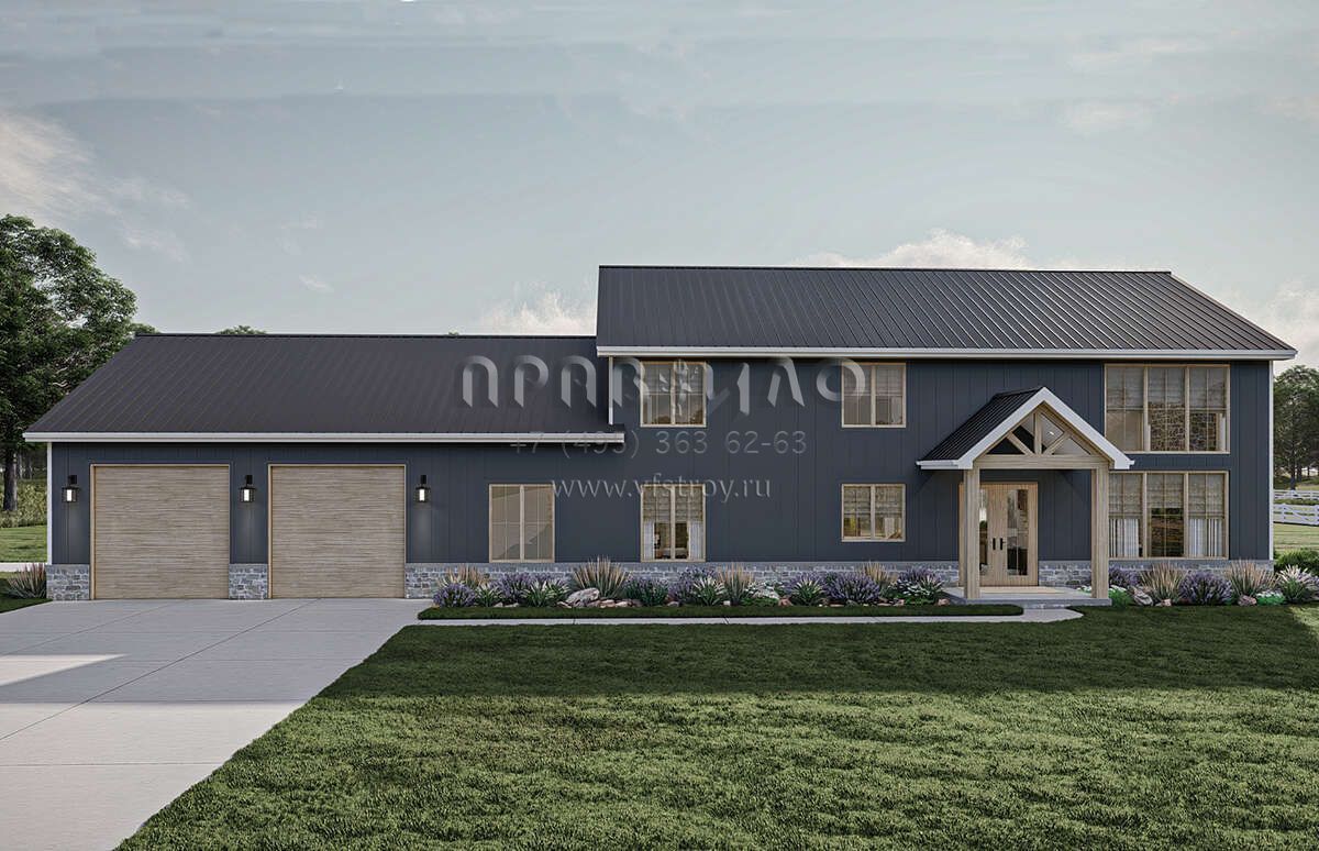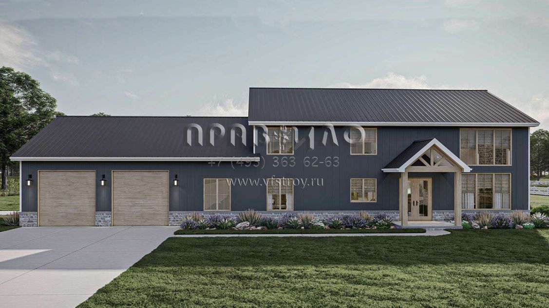 Проект двухэтажного дома с гаражом на три и более машин в стиле БарнХаус S5-301 (963-00865)