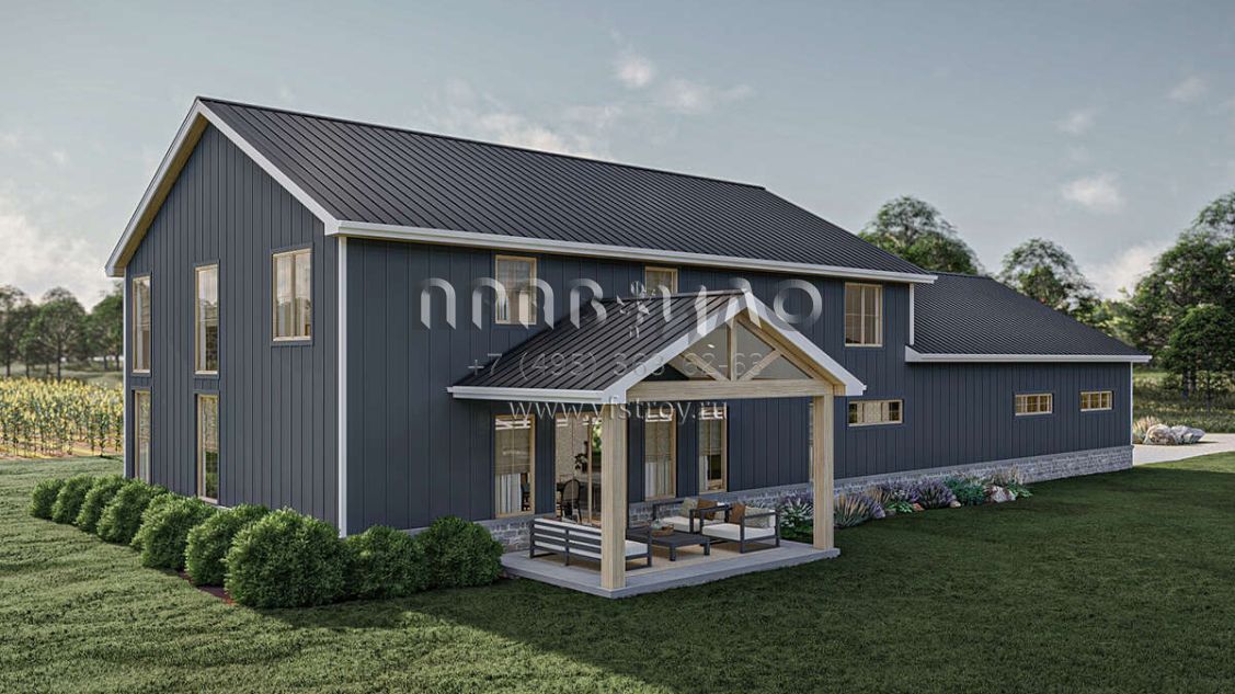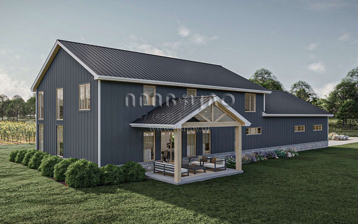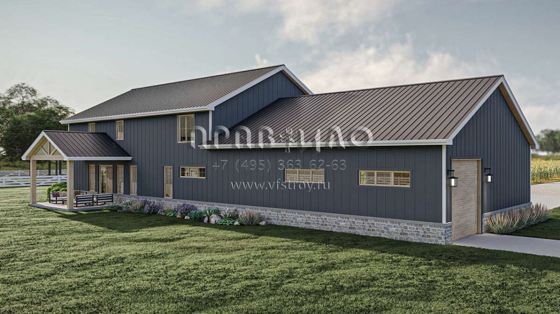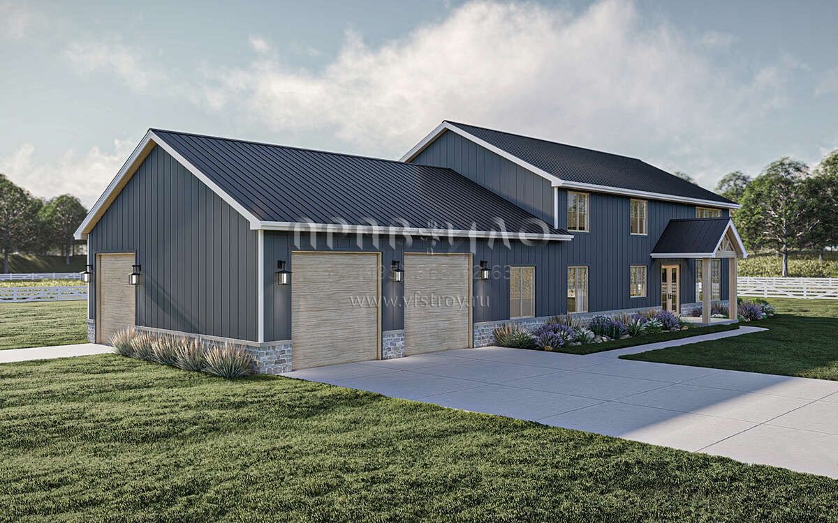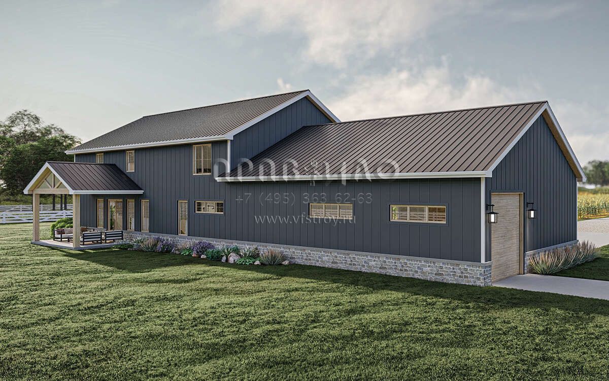 Проект двухэтажного дома с гаражом на три и более машин в стиле БарнХаус S5-301 (963-00865)