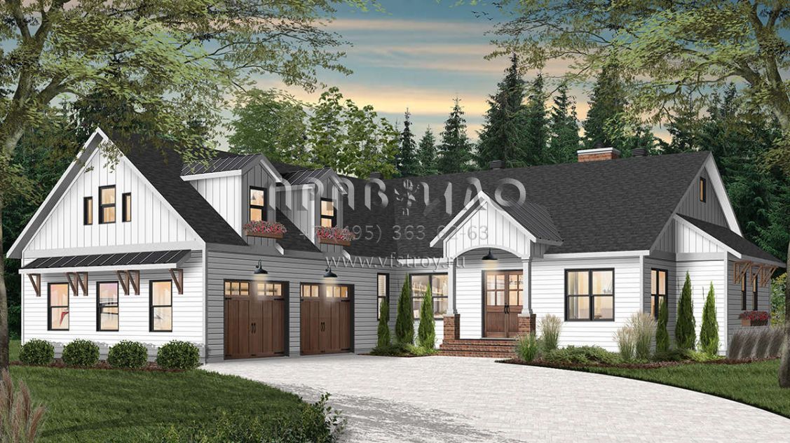 Проект двухэтажного дома с гаражом на две машины в современном стиле S5-302 (034-01210)