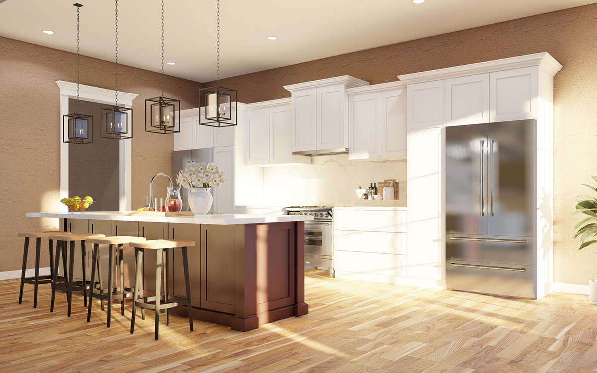 Двухэтажный проект дома позволяет рационально распорядиться площадью участка небольшого размера или узкой формы. На первом этаже находятся общие комнаты (гостиная/столовая, кухня, подсобные и технические помещения), на втором — спальни членов семьи.