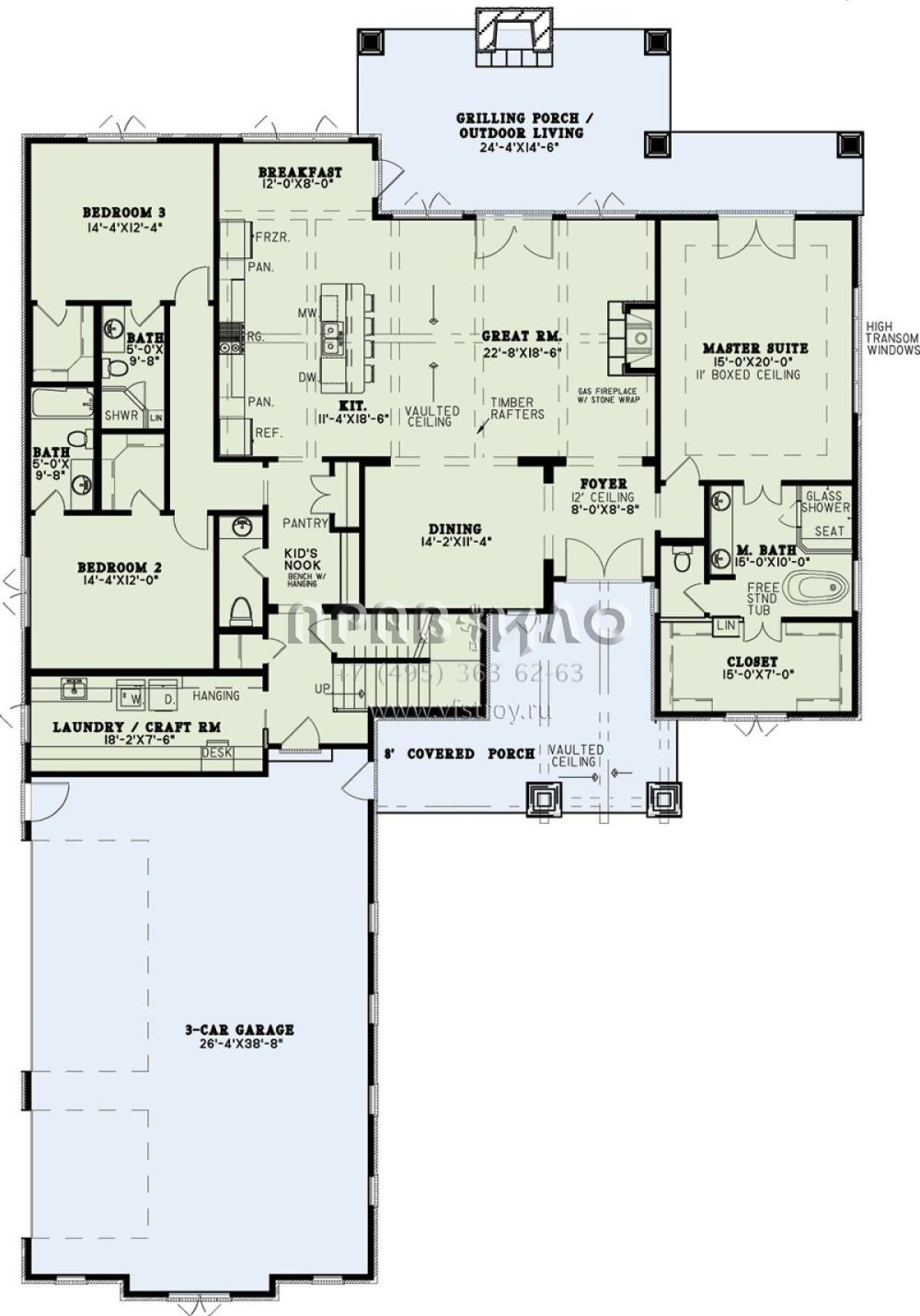 Поскольку этот проект разрабатывался иностранными архитекторами, для строительства дома требуется переработка проекта под действующие в России нормы. Данные визуализации проекта представлены для ознакомления с концепцией проекта. Проект разработан американским архитектурным бюро и представлен America's Best House Plans.