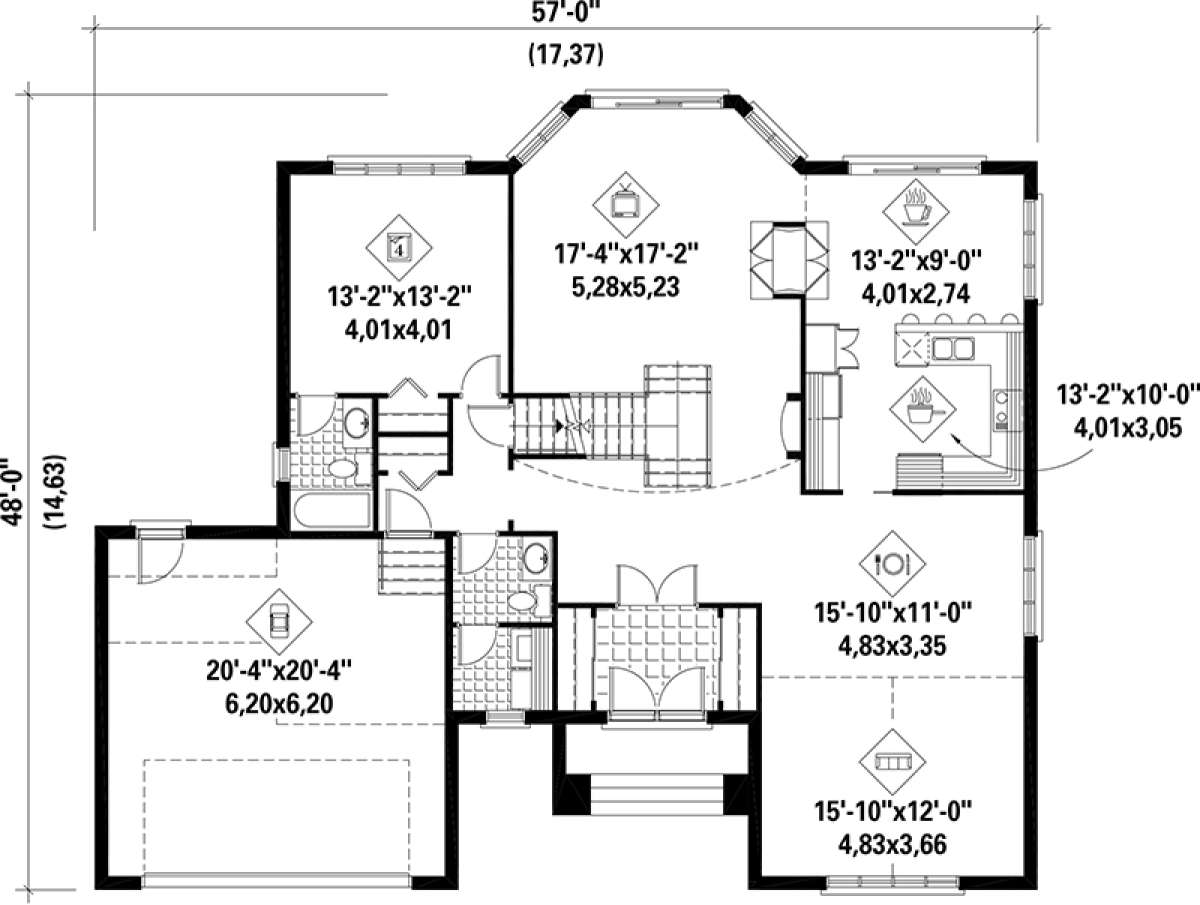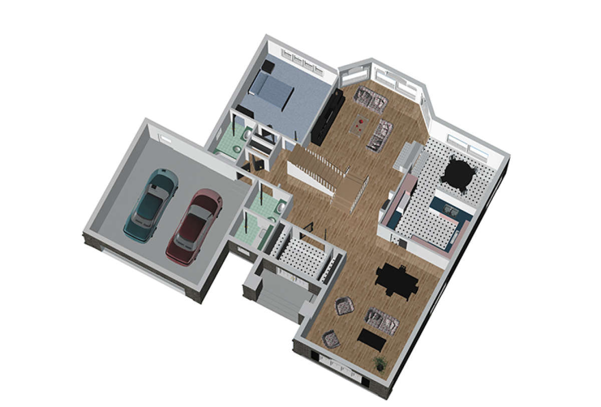 Проект двухэтажного дома с гаражом на две машины в стиле Ранчо S5-302 (6146-00170)