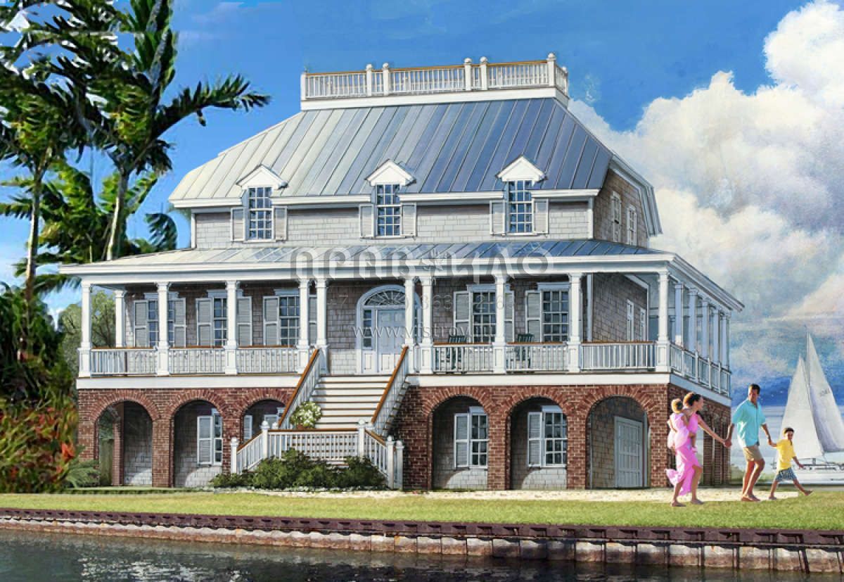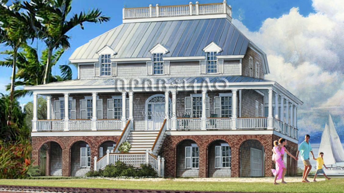 Проект двухэтажного дома с гаражом на три и более машин в прибрежном стиле S5-302 (7922-00105)