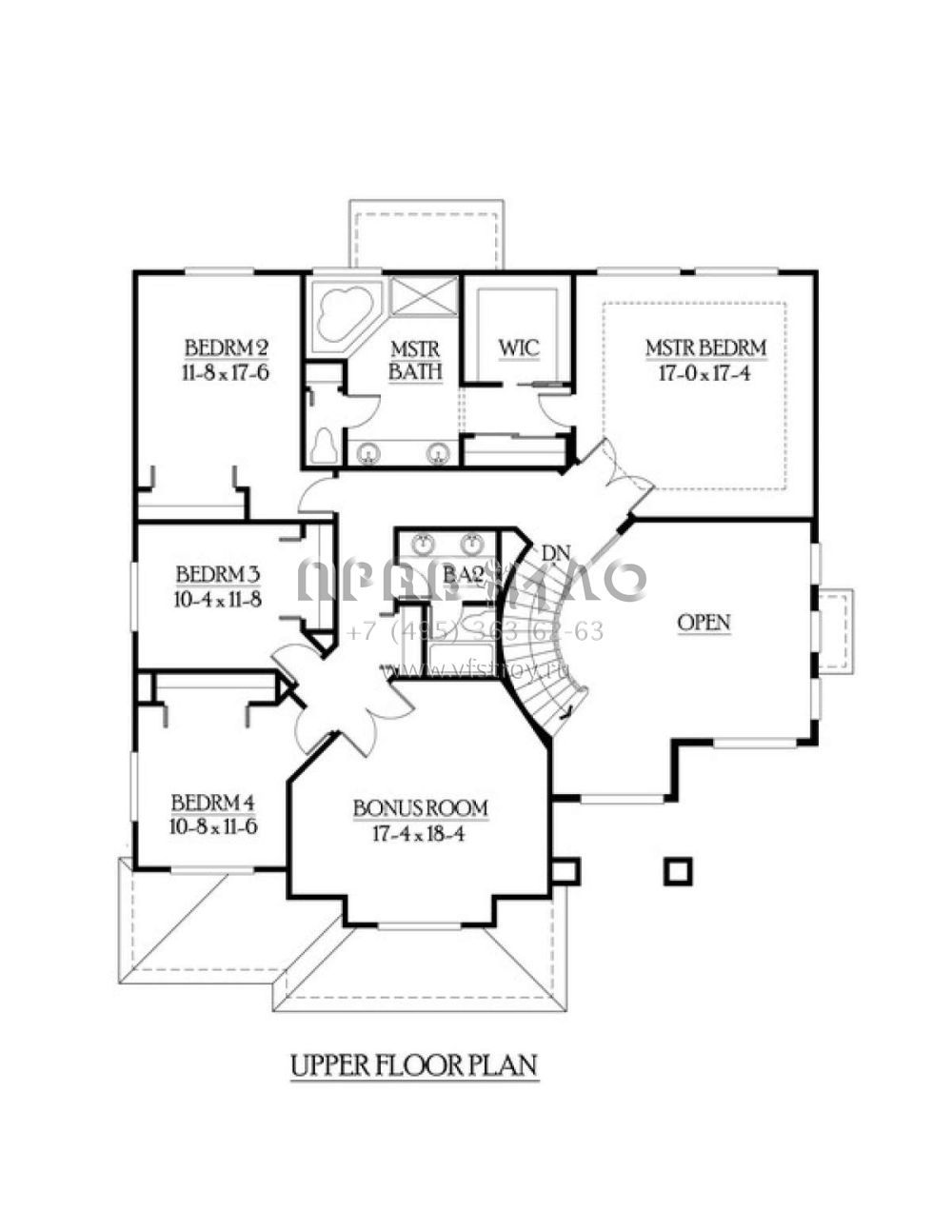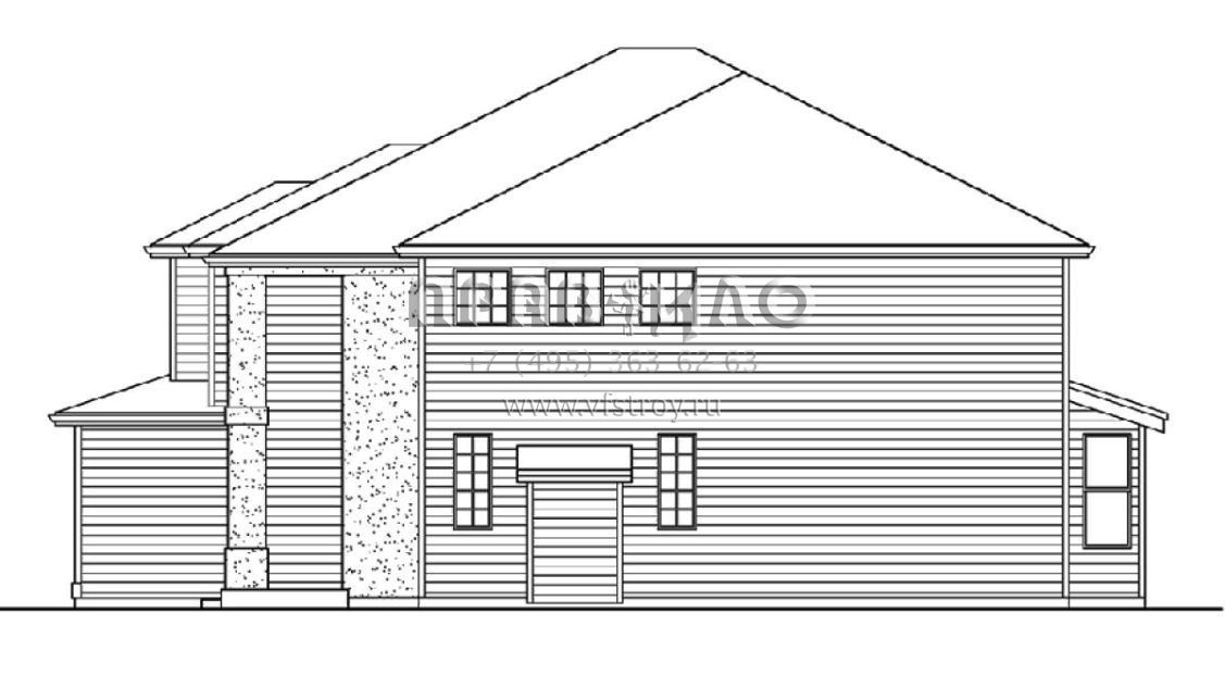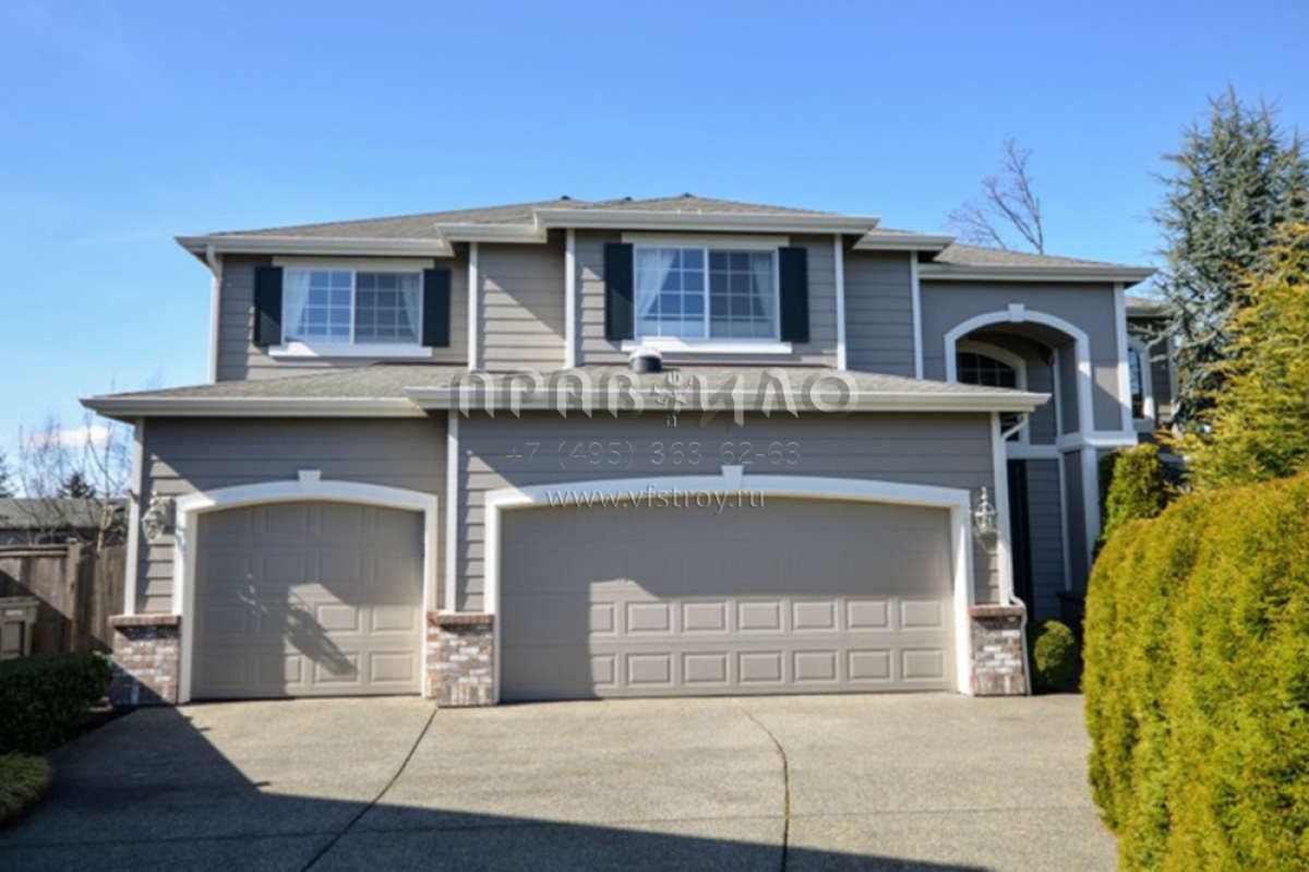 Это проект двухэтажного дома с гаражом на три и более машин жилой площадью 303 кв.м. Длина дома 17.1 м, ширина 14.9 м, высота 8.5 м. В доме четыре спальни и два санузла.