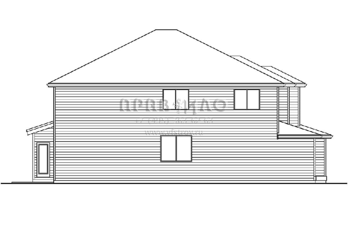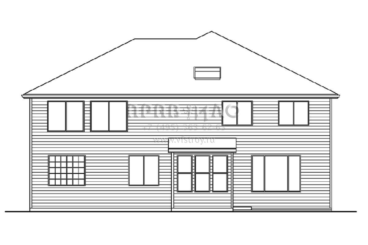 Двухэтажный проект дома позволяет рационально распорядиться площадью участка небольшого размера или узкой формы. На первом этаже находятся общие комнаты (гостиная/столовая, кухня, подсобные и технические помещения), на втором — спальни членов семьи.
