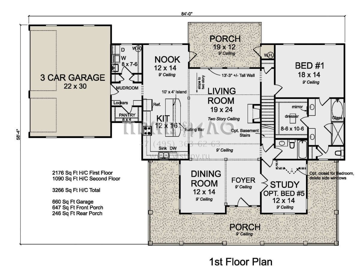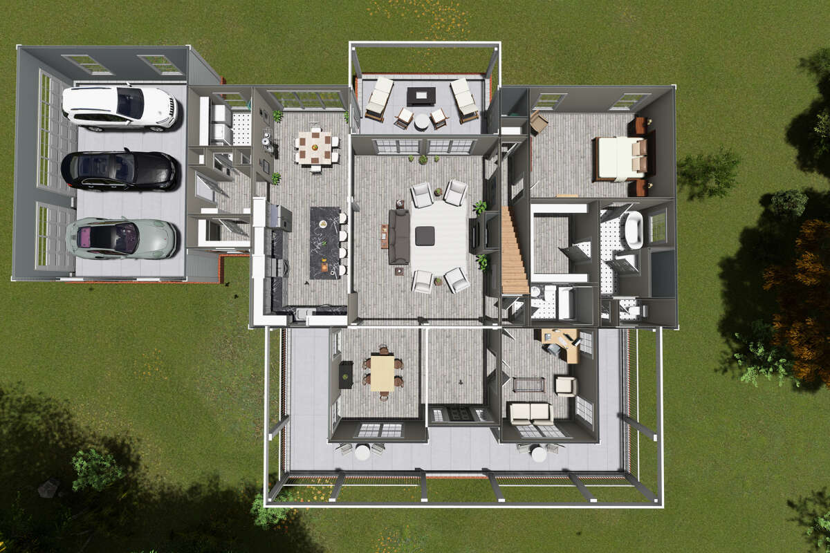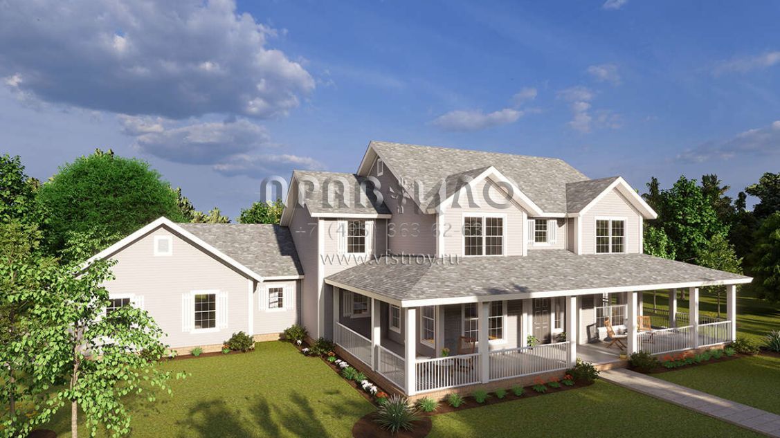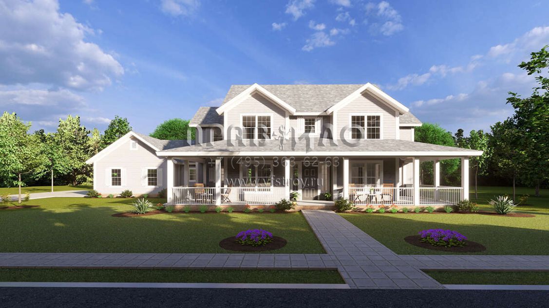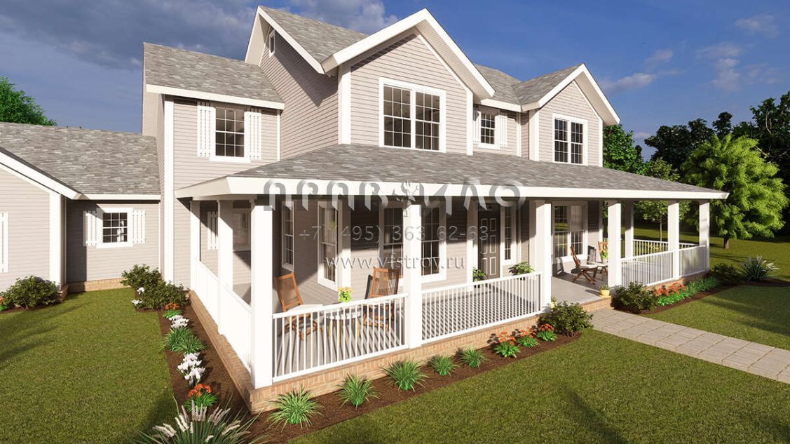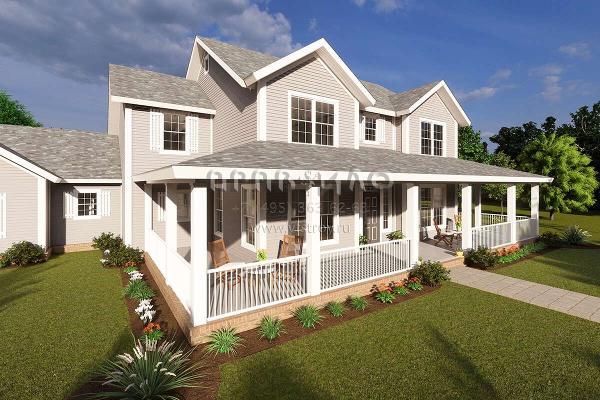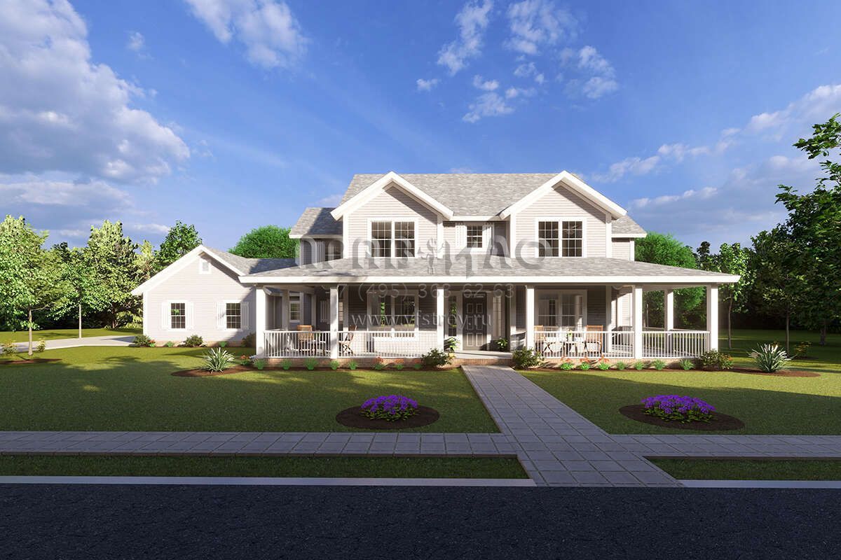 Проект двухэтажного дома с гаражом на три и более машин в стиле Ранчо S5-303 (4848-00383)