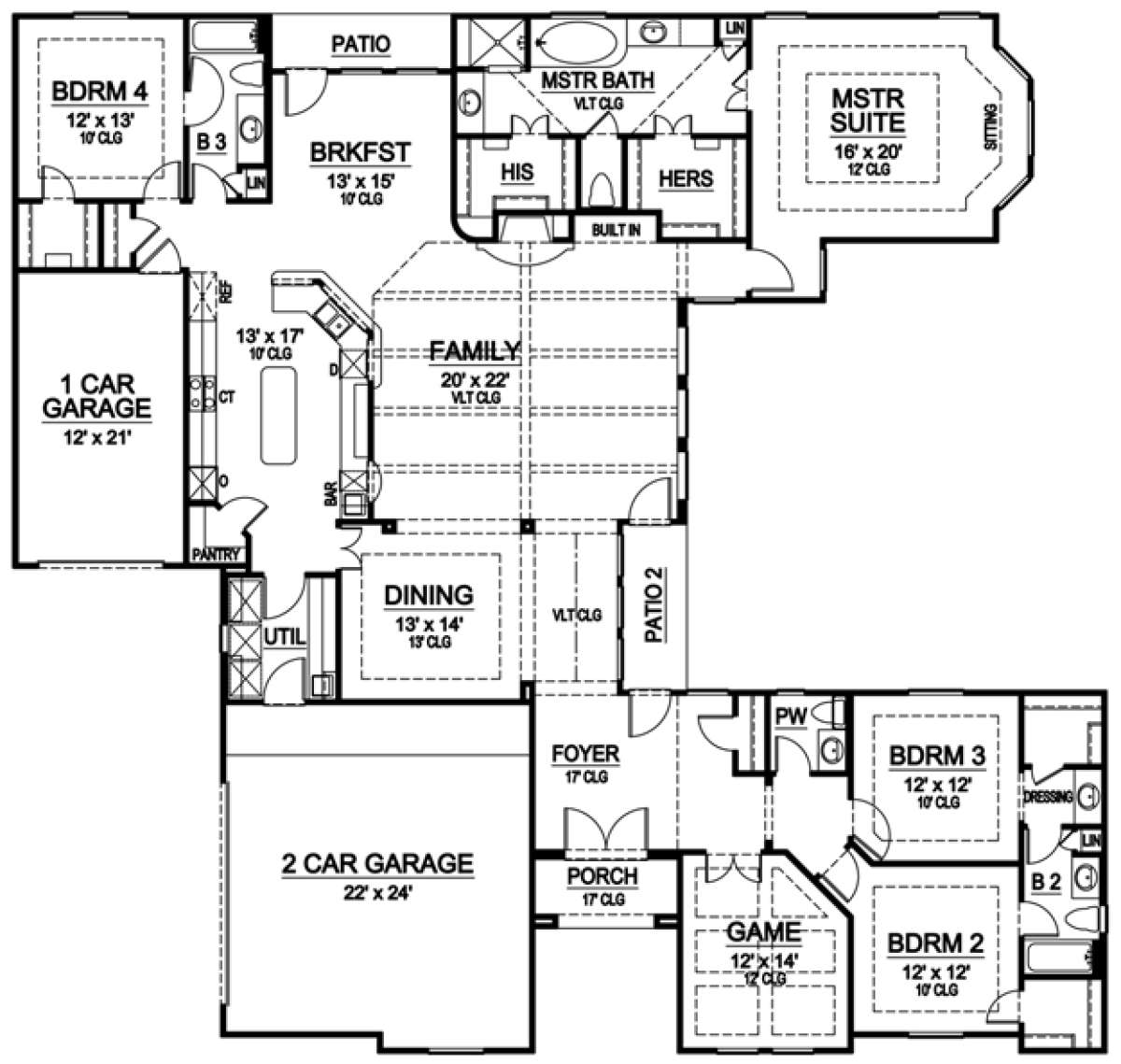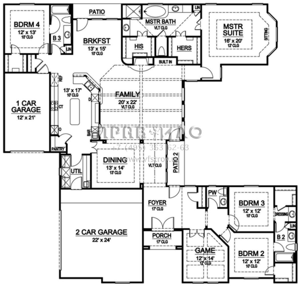 Проект одноэтажного дома с гаражом на три и более машин в американском стиле S5-303 (5445-00077)