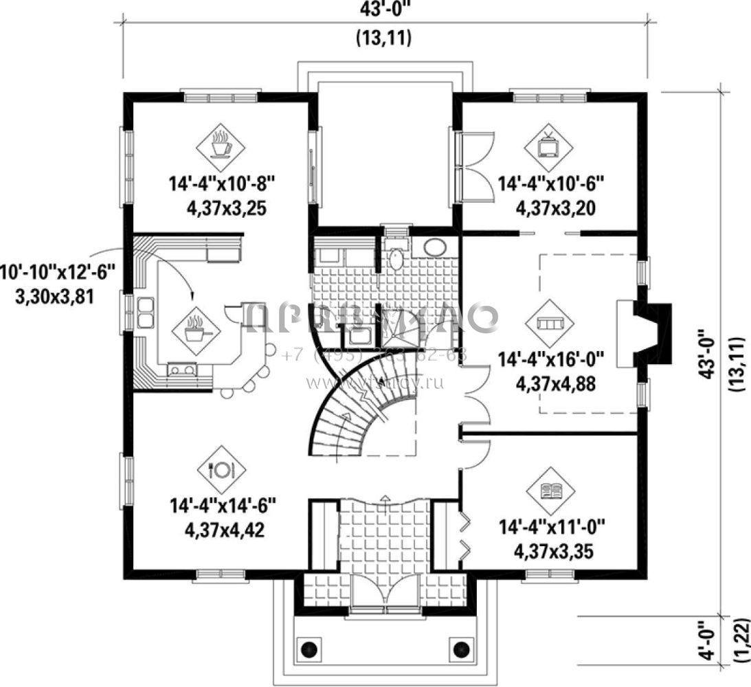 Проект двухэтажного дома без гаража в стиле Особняк S5-303 (6146-00077)