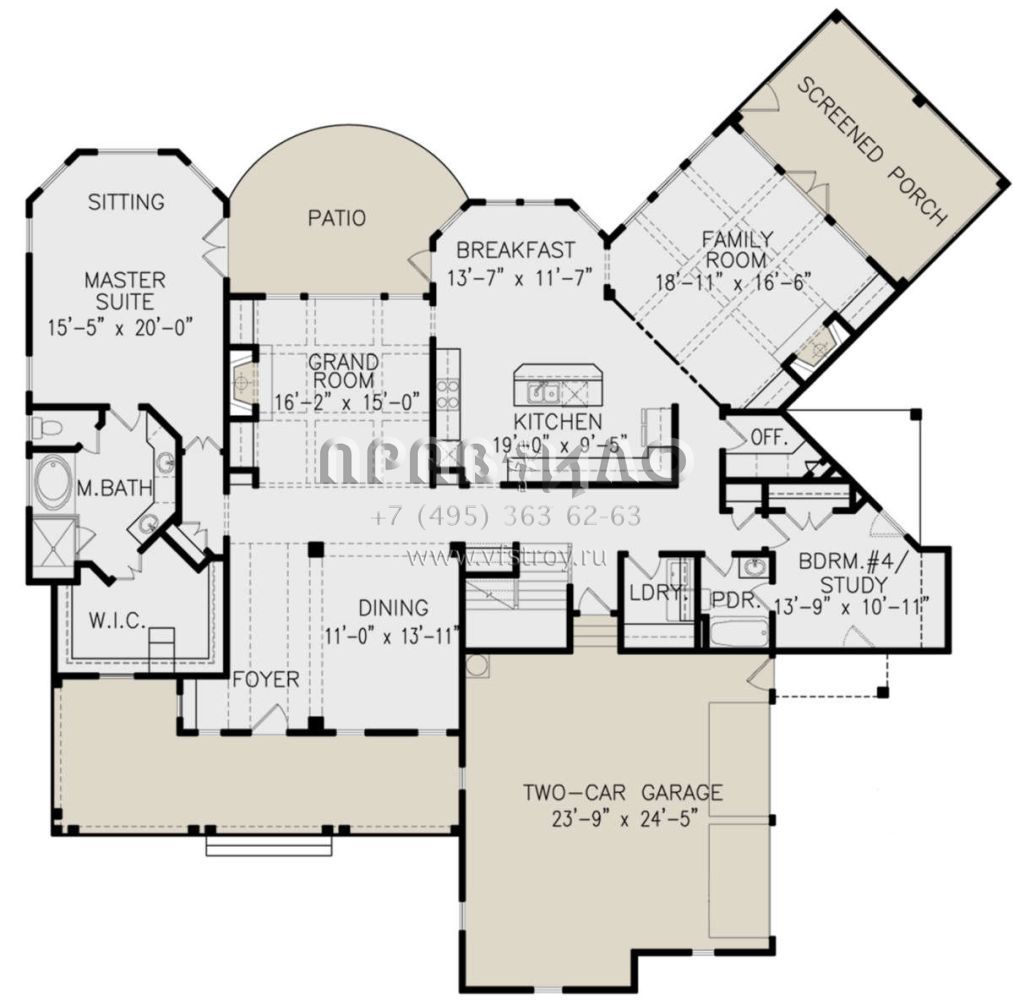 Проект двухэтажного дома с гаражом на три и более машин в стиле Ранчо S5-303 (699-00178)