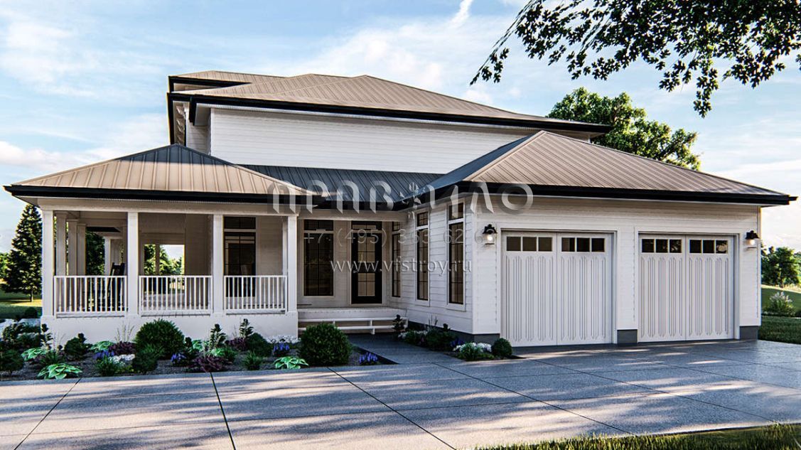 Проект двухэтажного дома с гаражом на две машины в стиле Ранчо S5-303 (963-00372)
