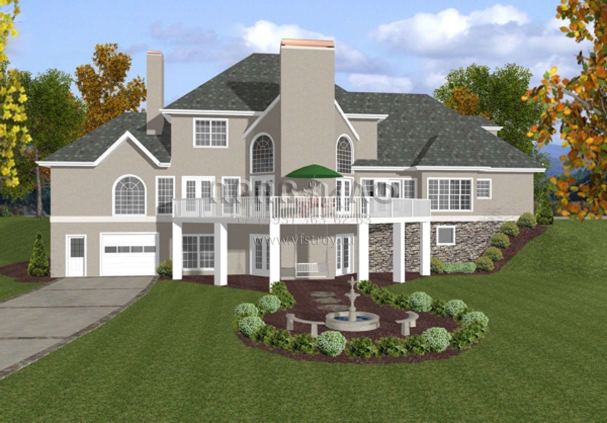 Проект двухэтажного дома с гаражом на три и более машин в стиле Ранчо S5-304 (036-00148)