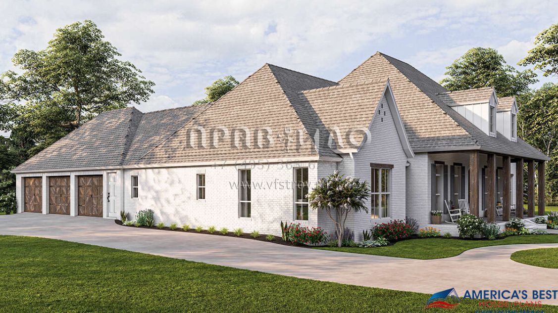 Проект одноэтажного дома с гаражом на три и более машин в стиле Ранчо S5-304 (4534-00036)