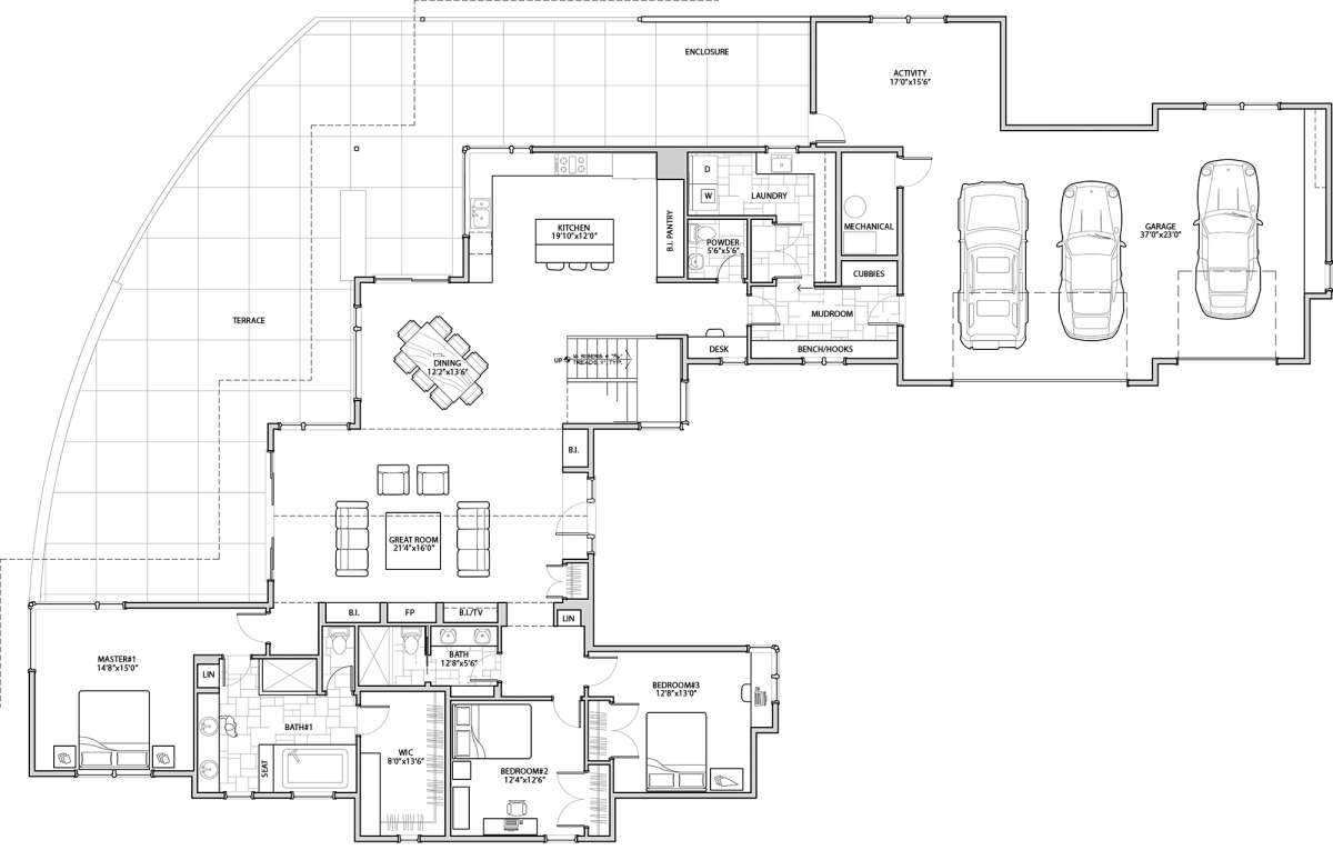 Проект двухэтажного дома с гаражом на три и более машин в современном стиле S5-304 (5829-00016)