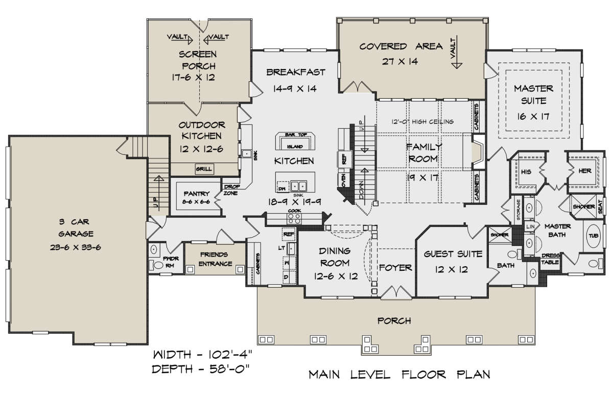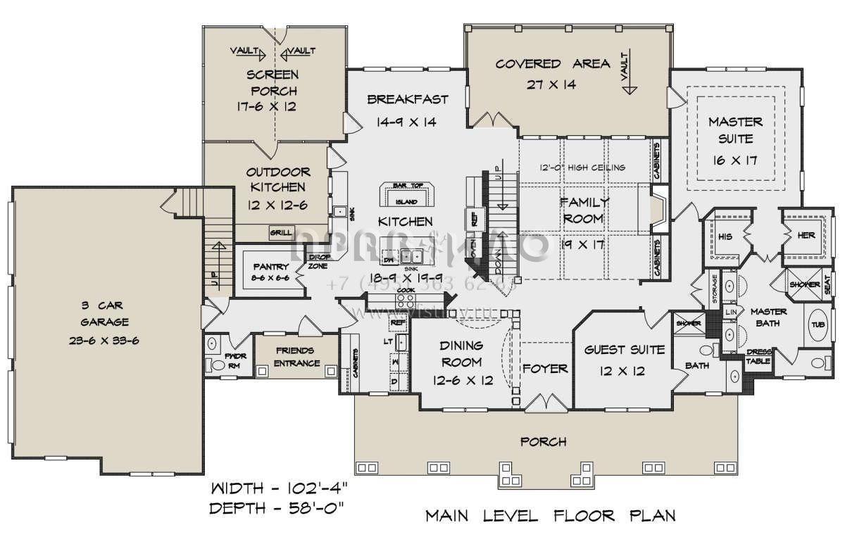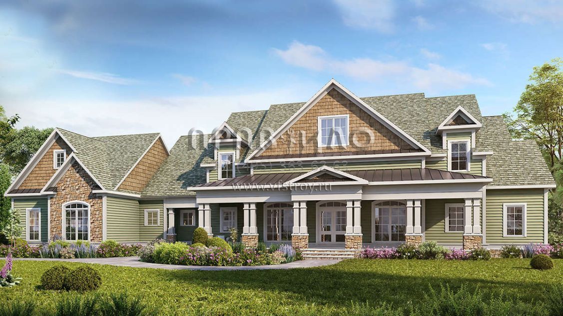 Проект двухэтажного дома с гаражом на три и более машин в стиле Ранчо S5-304 (6082-00169)