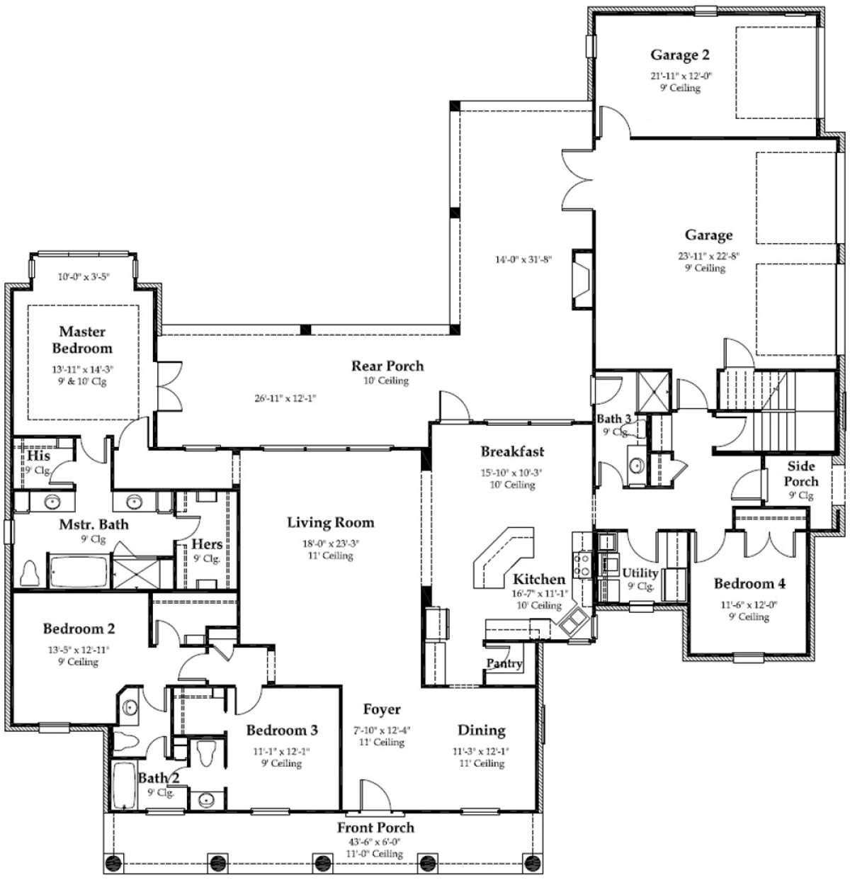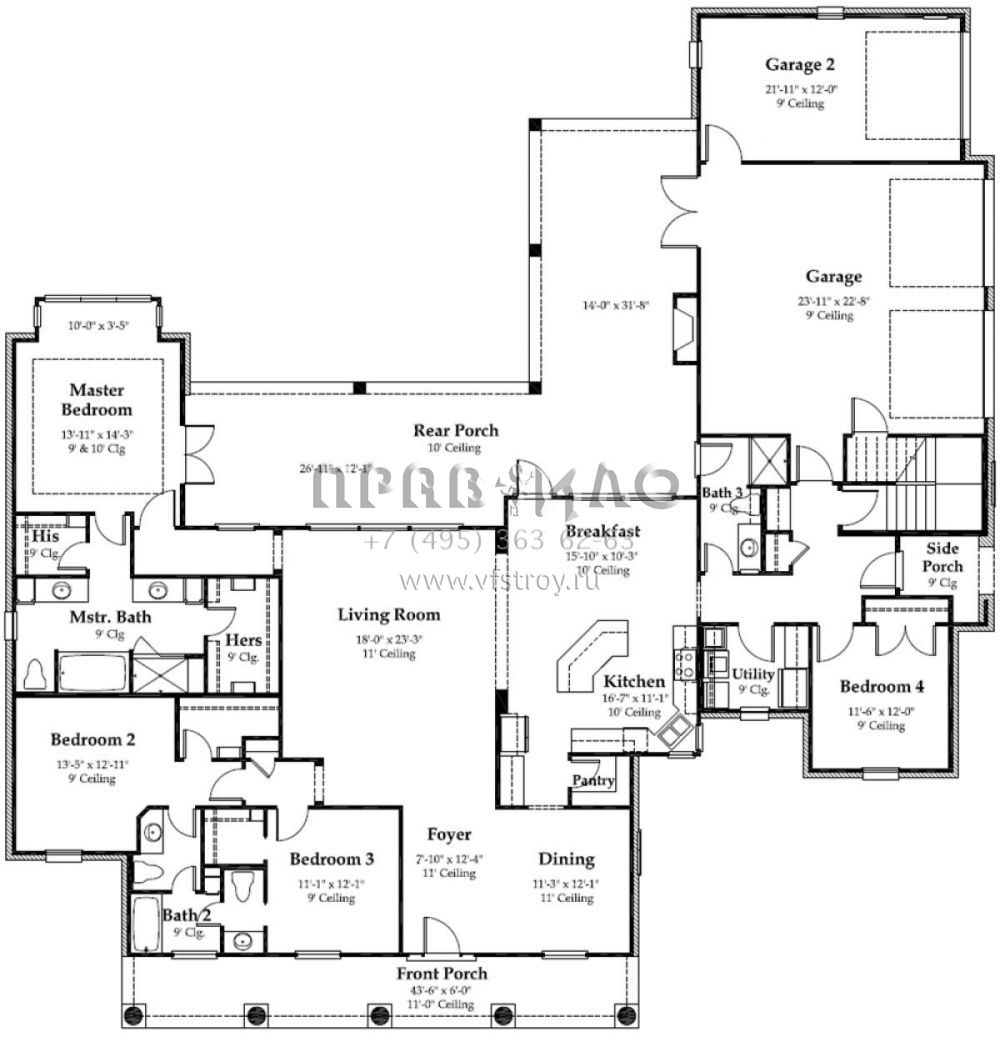 Проект двухэтажного дома с гаражом на три и более машин в стиле Ранчо S5-304 (7516-00016)