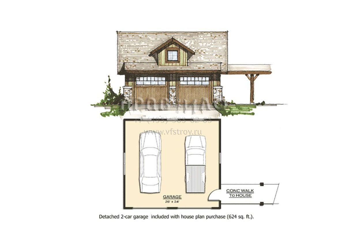 Проект двухэтажного дома с гаражом на две машины в стиле Шале S5-304 (8504-00152)