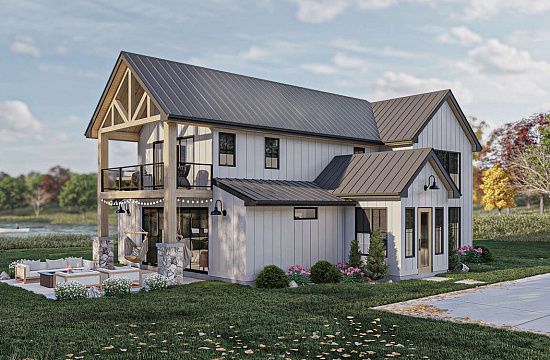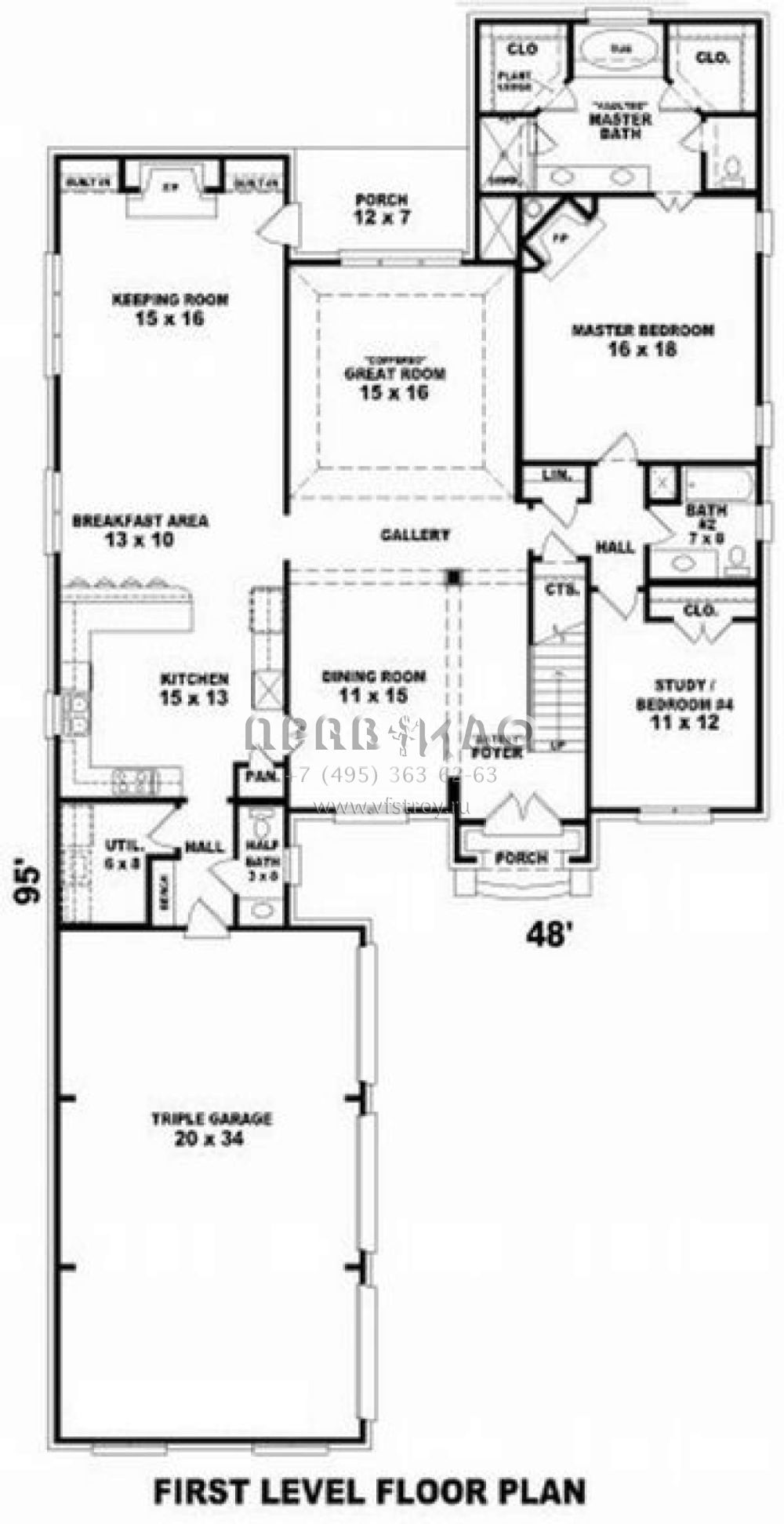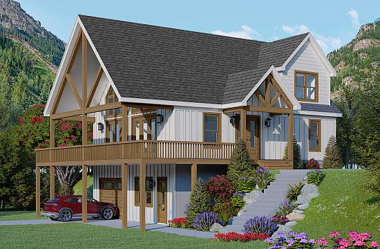 Проект двухэтажного дома с гаражом на три и более машин в стиле Ранчо S5-305 (053-01572)