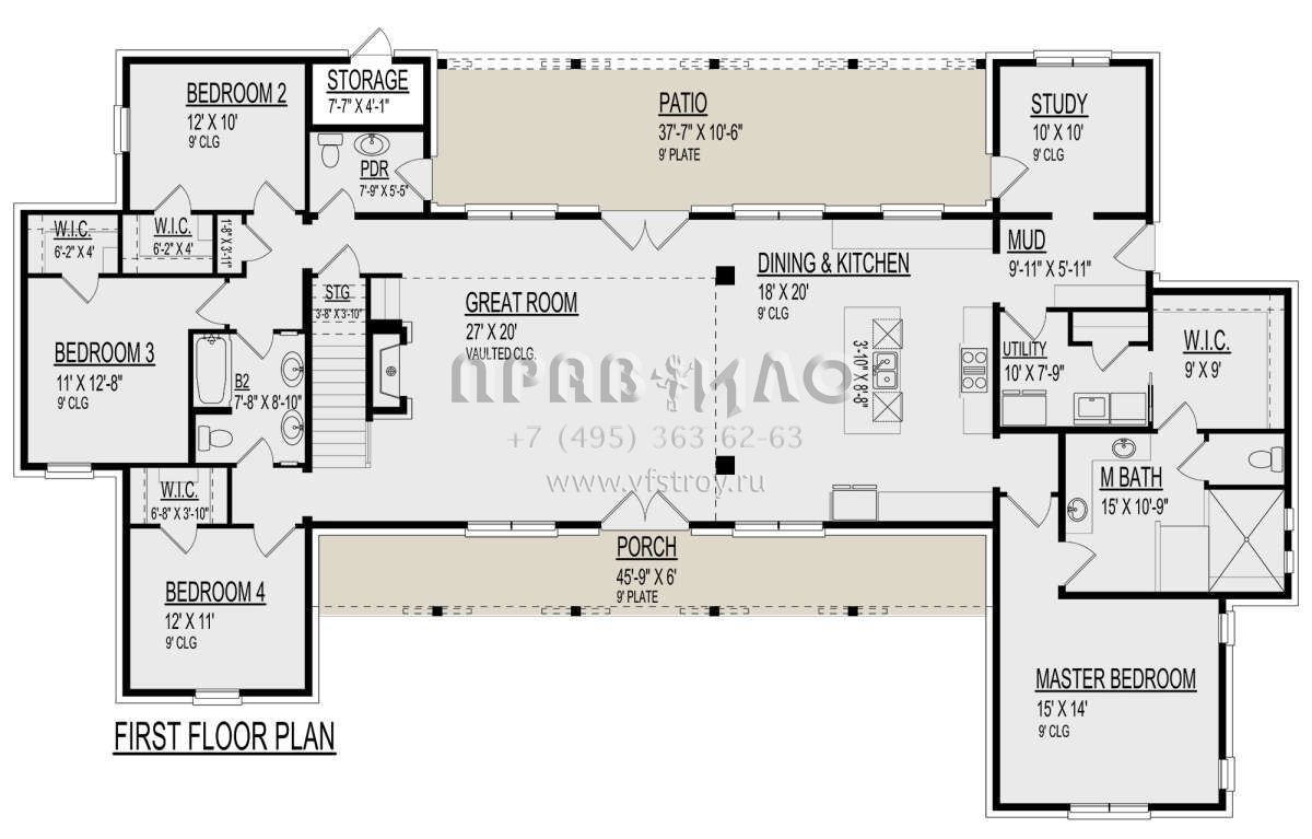 Поскольку этот проект разрабатывался иностранными архитекторами, для строительства дома требуется переработка проекта под действующие в России нормы. Данные визуализации проекта представлены для ознакомления с концепцией проекта. Проект разработан американским архитектурным бюро и представлен America's Best House Plans.