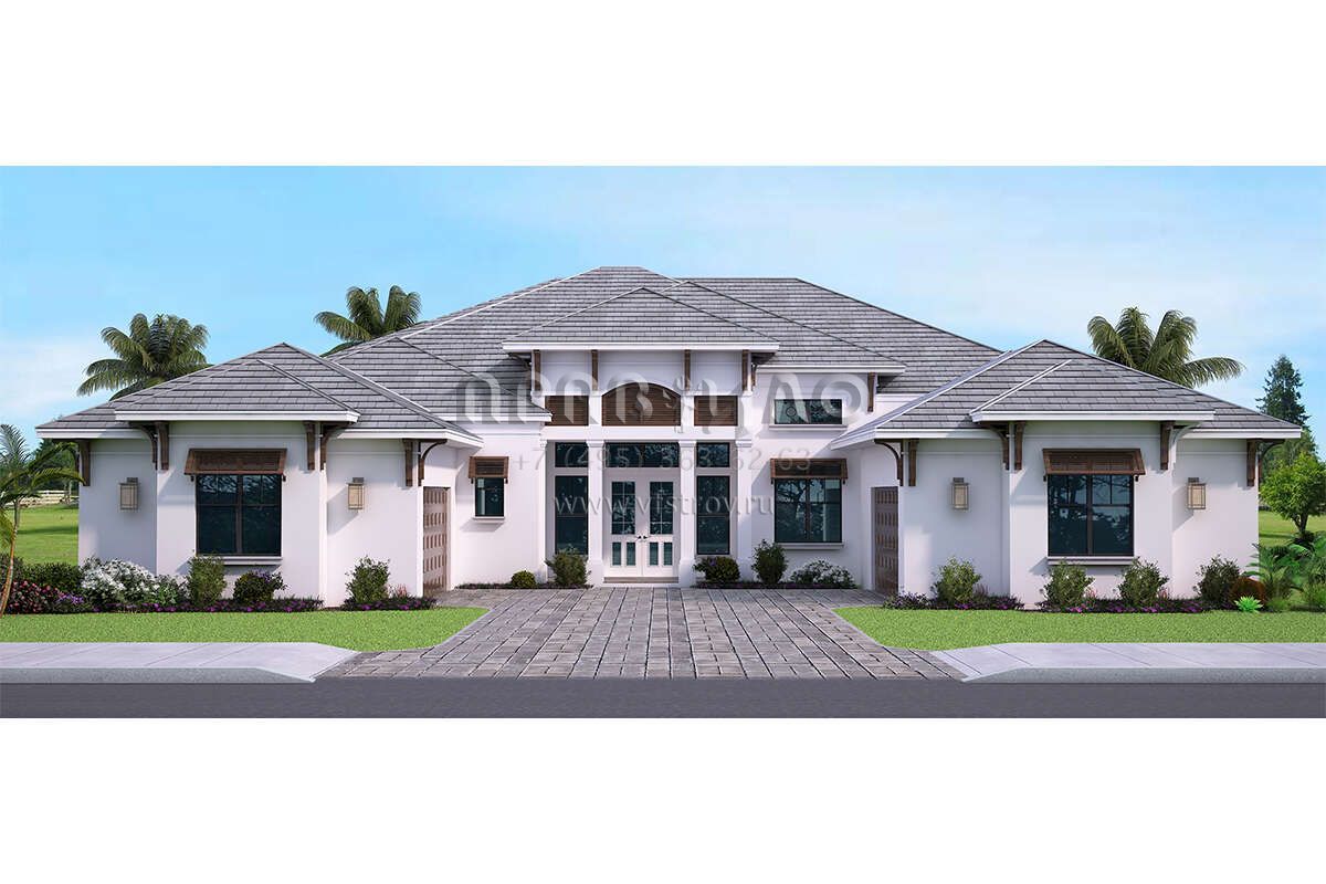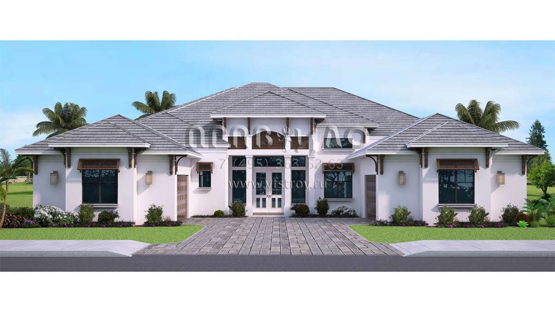 Проект одноэтажного дома с гаражом на три и более машин в прибрежном стиле S5-306 (207-00095)