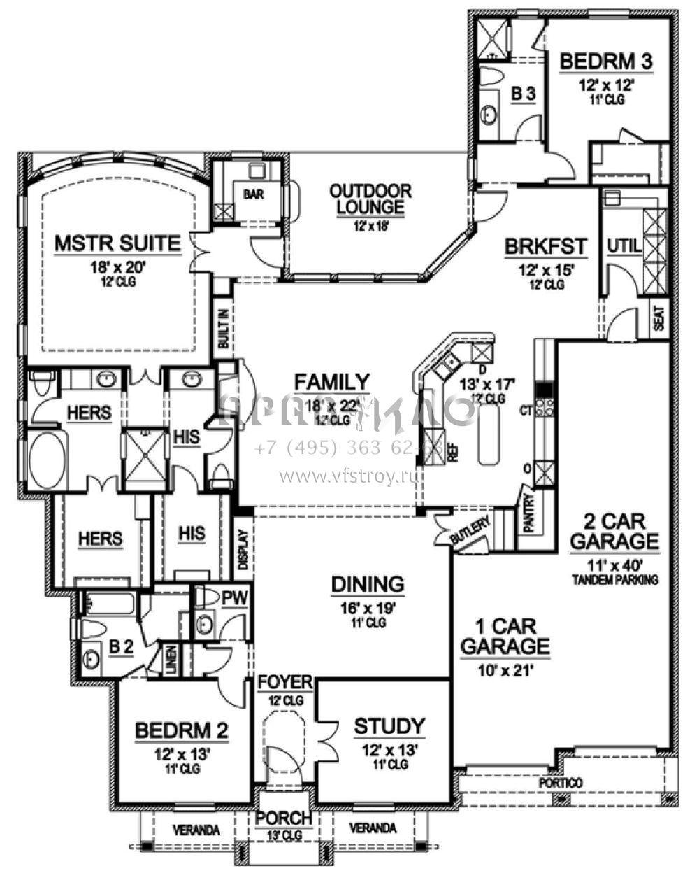 Проект одноэтажного дома с гаражом на три и более машин в стиле Готика S5-306 (5445-00109)