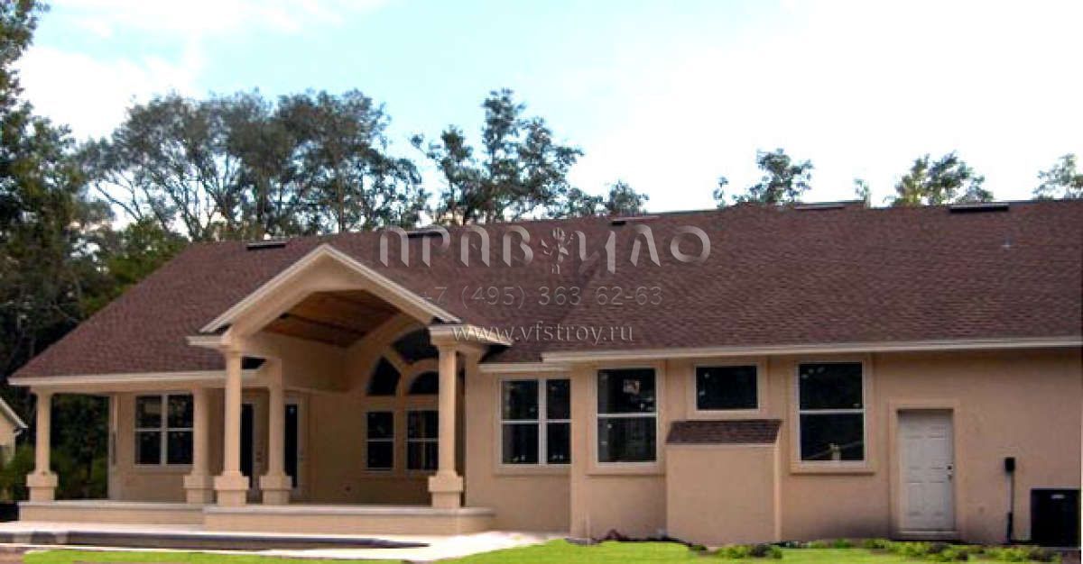 Большая площадь участка позволяет выбрать одноэтажный проект дома, особенно если в семье есть пожилые люди, инвалиды или маленькие дети.