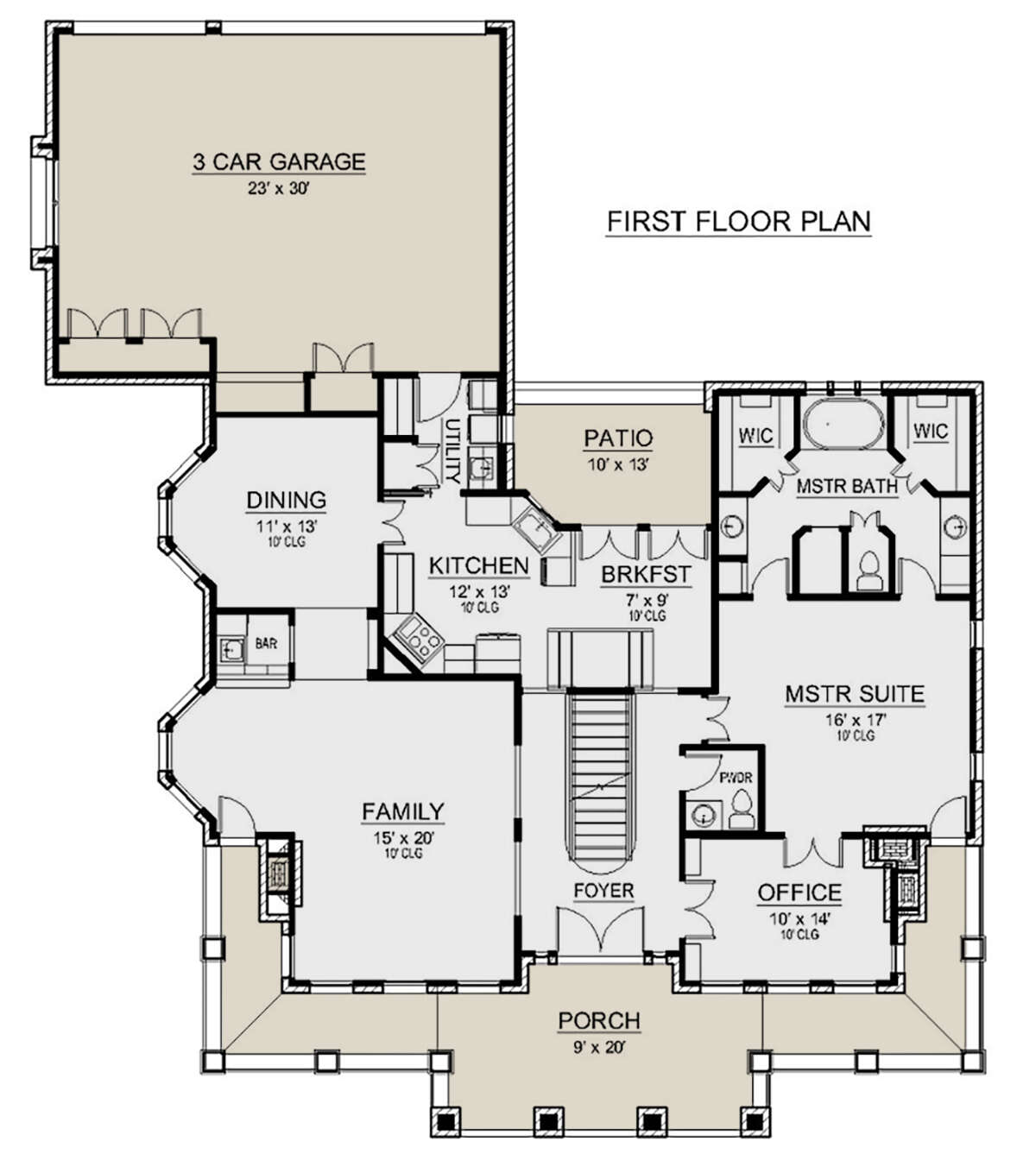 Проект двухэтажного дома с гаражом на три и более машин в стиле Ранчо S5-307 (5445-00442)
