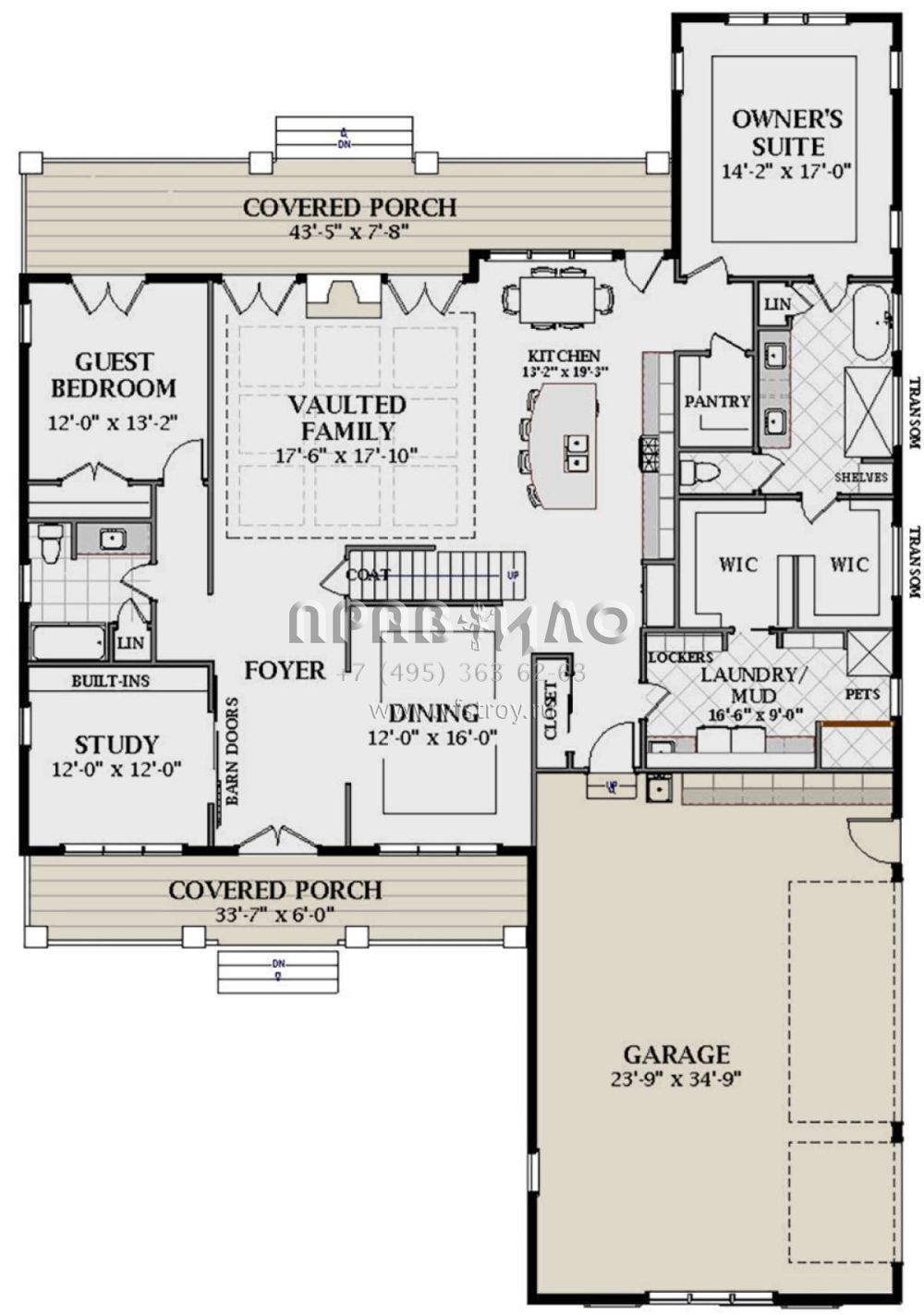 Проект двухэтажного дома с гаражом на три и более машин в современном стиле S5-307 (6849-00080)