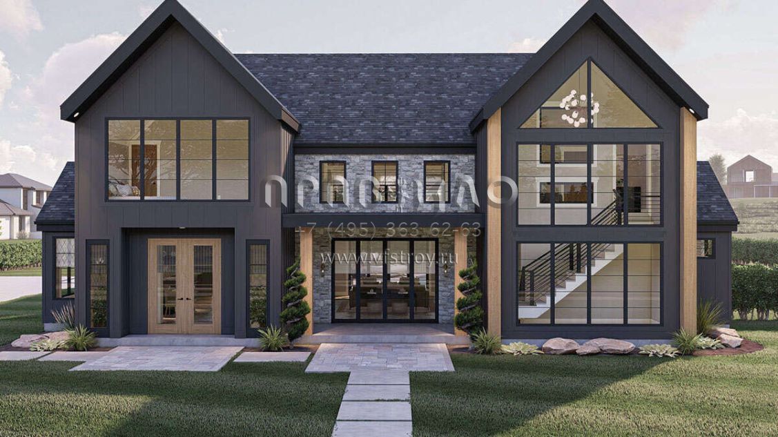 Проект двухэтажного дома с гаражом на две машины в современном стиле S5-307 (963-00741)