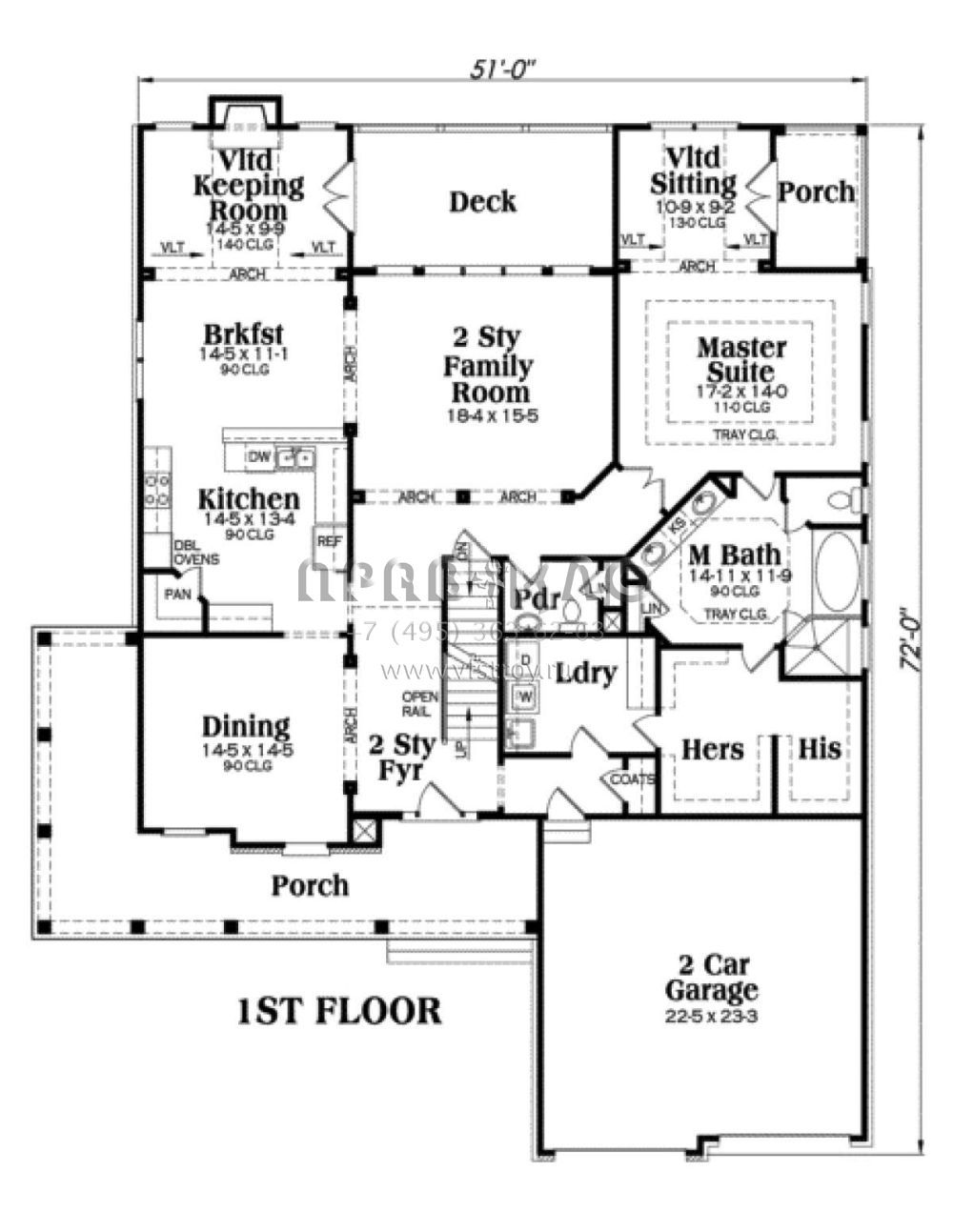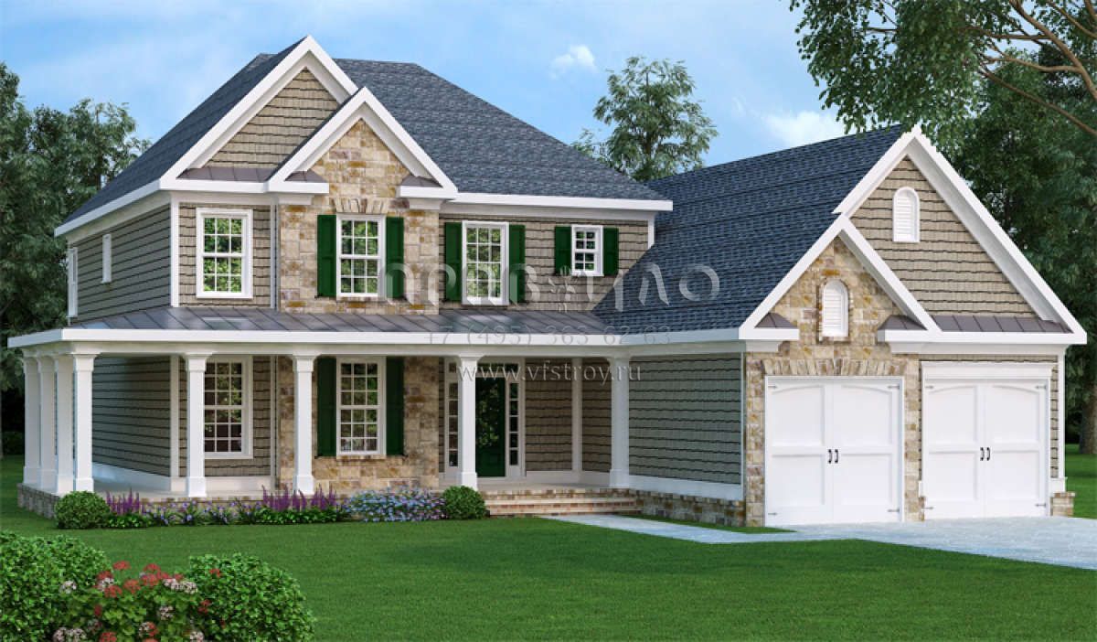 Проект двухэтажного дома с гаражом на две машины в стиле Ранчо S5-308 (009-00066)