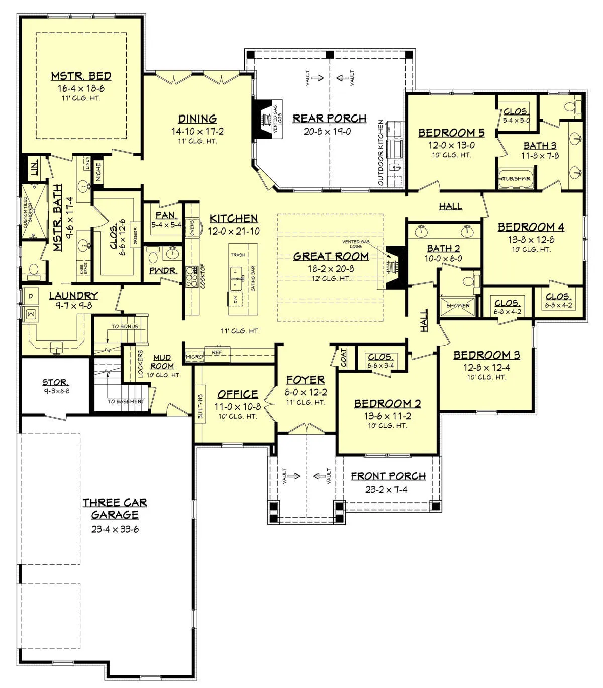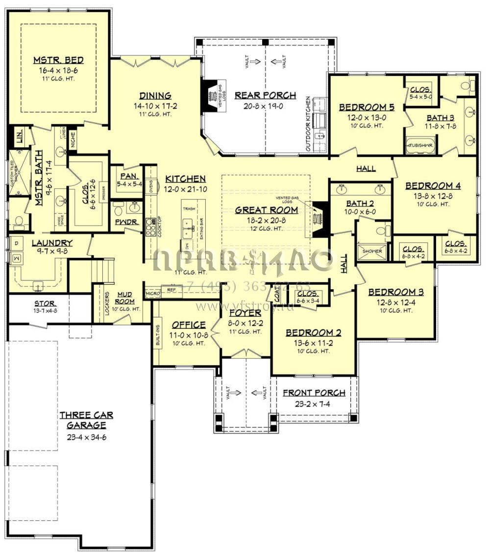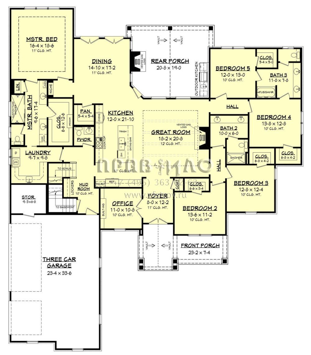 Проект одноэтажного дома с гаражом на три и более машин в американском стиле S5-308 (041-00183)