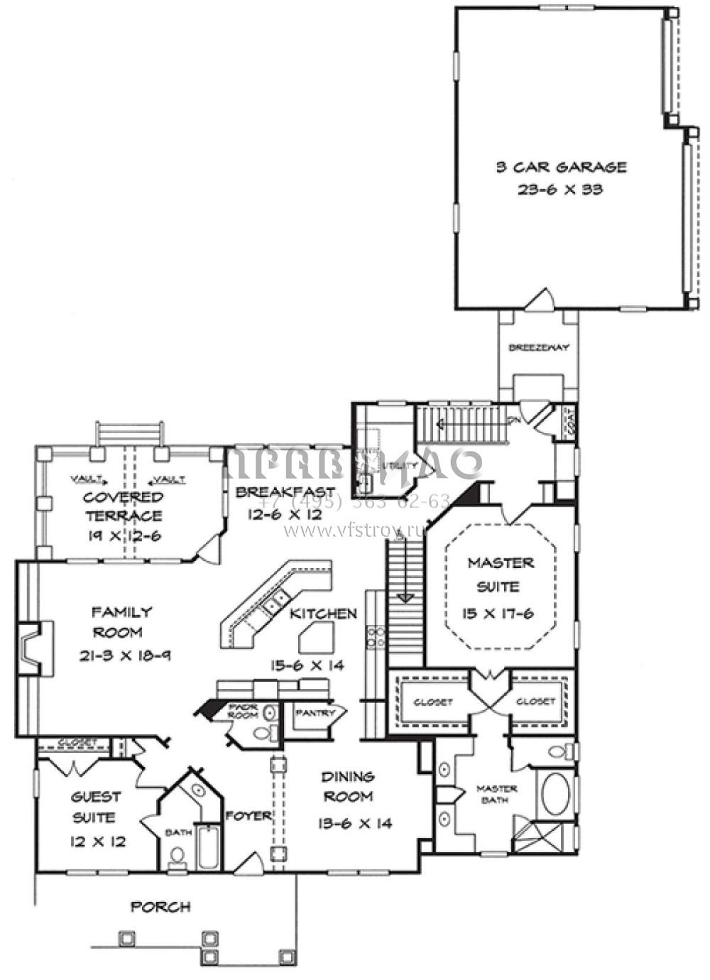 S5-308 (6082-00021) Это иностранный проект, для которого требуется адаптация под нормы, действующие в Российской Федерации. Вы видите проект дома в стиле Ранчо. В этом доме сочетаются черты сельской постройки и аскетичность лофта. Внутри жильцы смогут проводить время с максимальным комфортом. Обратим внимание, что сейчас на планировках все размеры представлены в футах. Для перевода в метры вам необходимо значение в футах умножить на 0,3048.