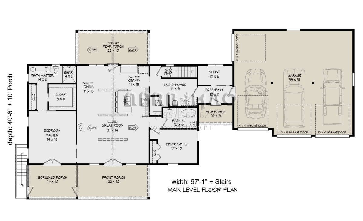 S5-308 (940-00848) Это иностранный проект, для которого требуется адаптация под нормы, действующие в Российской Федерации. Вы видите проект дома в стиле Ранчо. В этом доме сочетаются черты сельской постройки и аскетичность лофта. Внутри жильцы смогут проводить время с максимальным комфортом. Обратим внимание, что сейчас на планировках все размеры представлены в футах. Для перевода в метры вам необходимо значение в футах умножить на 0,3048.
