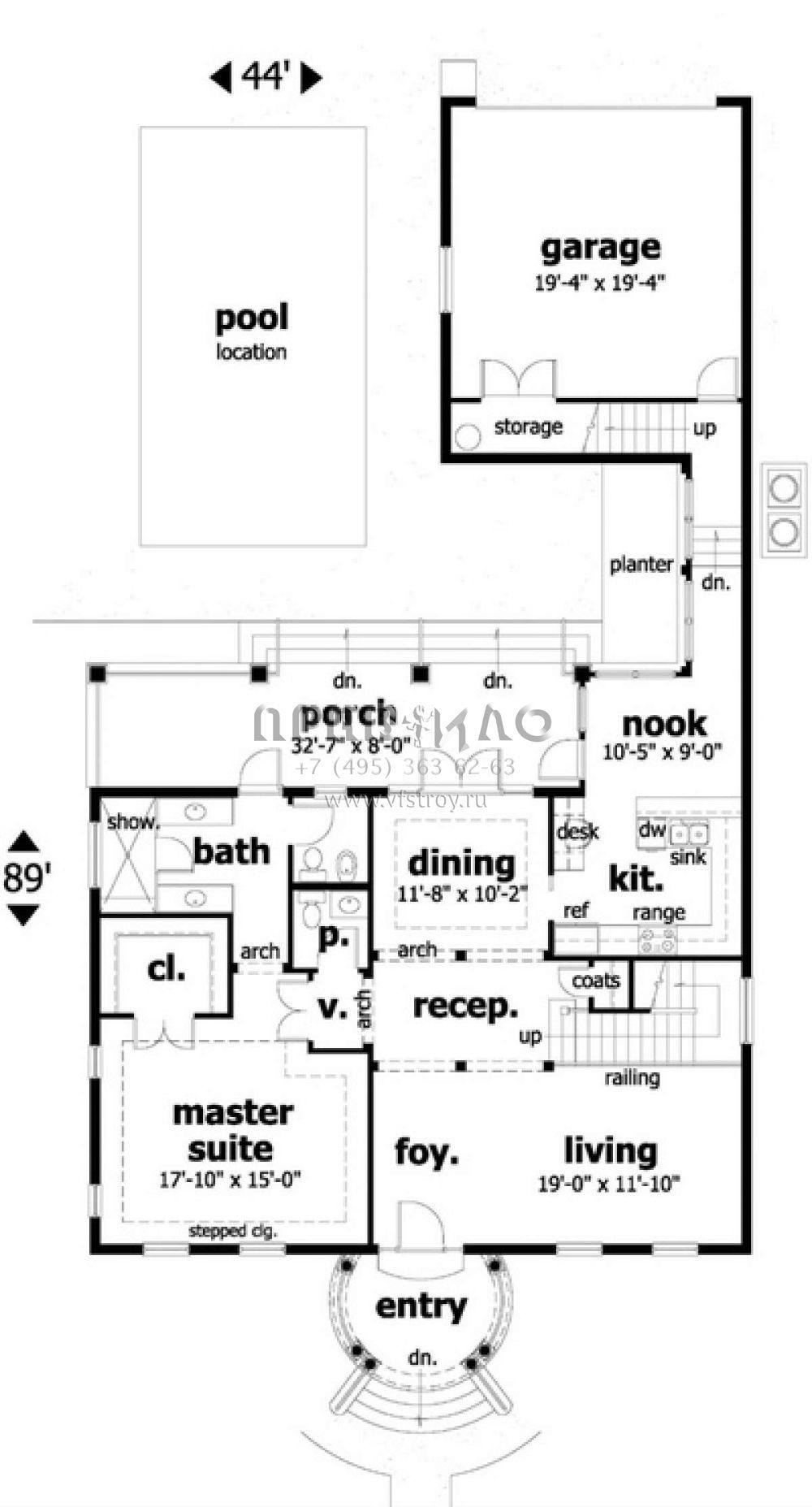 Проект двухэтажного дома с гаражом на одну машину в стиле Особняк S5-309 (028-00016)