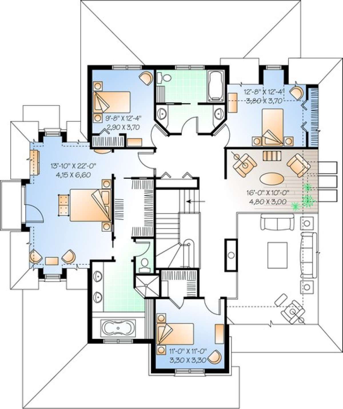 S5-309 (034-00839) Это иностранный проект, для которого требуется адаптация под нормы, действующие в Российской Федерации. Вы видите проект дома в стиле Ранчо. В этом доме сочетаются черты сельской постройки и аскетичность лофта. Внутри жильцы смогут проводить время с максимальным комфортом. Обратим внимание, что сейчас на планировках все размеры представлены в футах. Для перевода в метры вам необходимо значение в футах умножить на 0,3048.